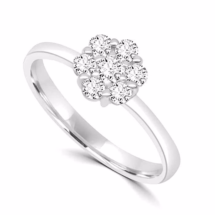 Anello solitario di diamanti Cipolla dal 1950 Gioielli COLLEZIONE NARCISO lavorazione artigianale; Montatura in oro bianco 750%, diamante centrale 0,07 ct taglio brillante colore F purezza VSI, diamanti a contorno ct 0,30