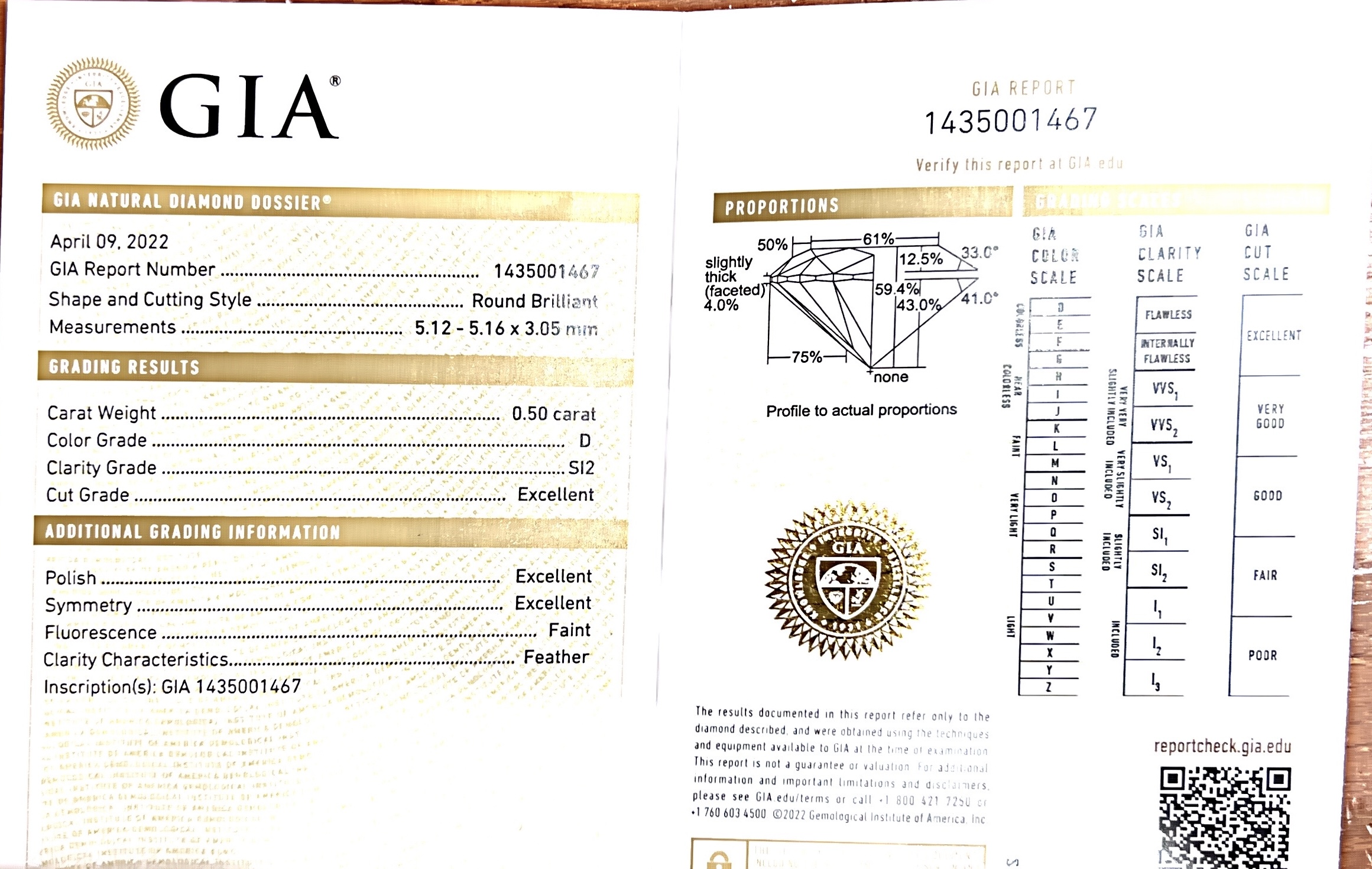 Caratura pietra N° 1 0,50 ct