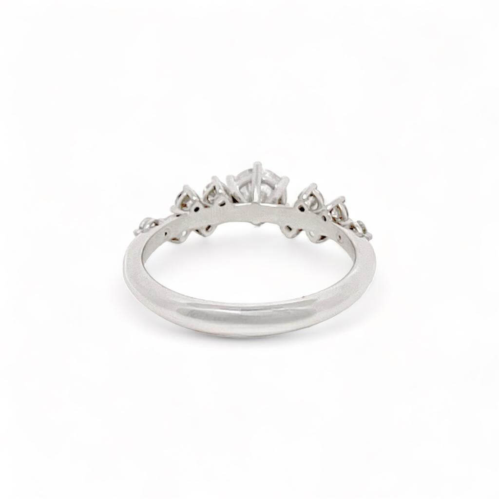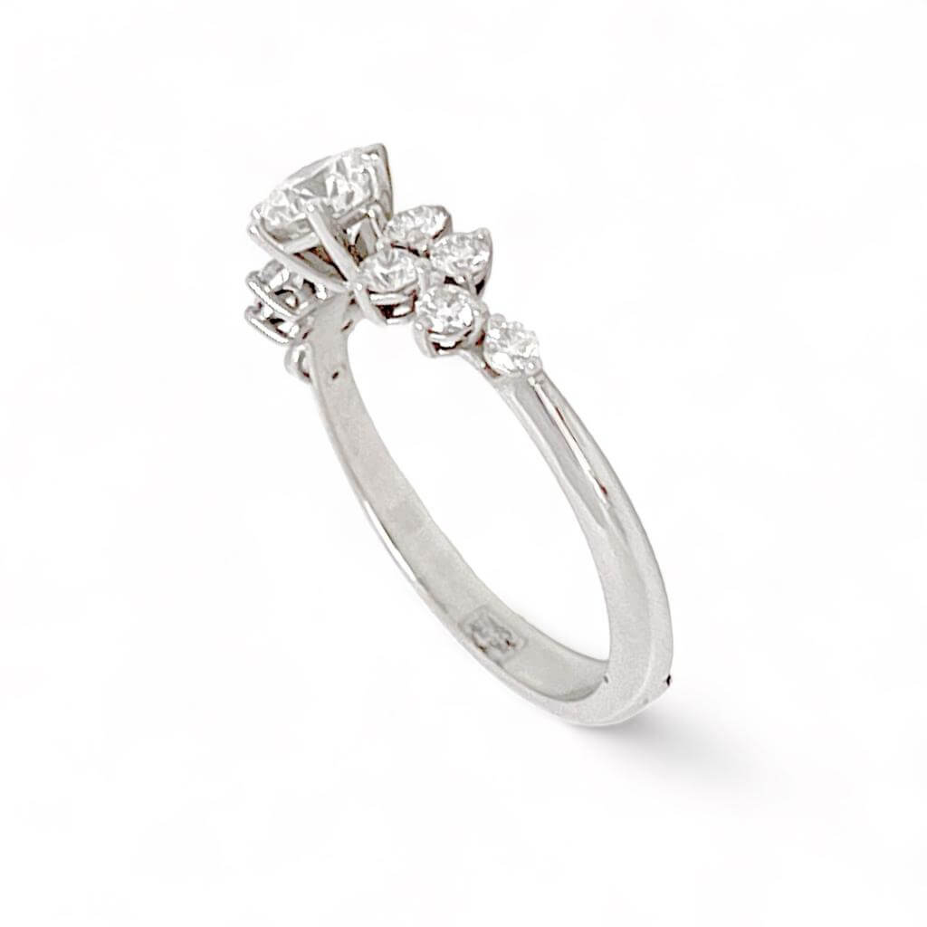 Anello solitario art. SN01 in oro bianco 18 kt con diamante centrale da 0,80 ct certificato GIA e contorno di diamanti da 0,47 ct. Una raffinata creazione della collezione Fiocco di Neve firmata Cipolla dal 1950 Gioiellieri.
