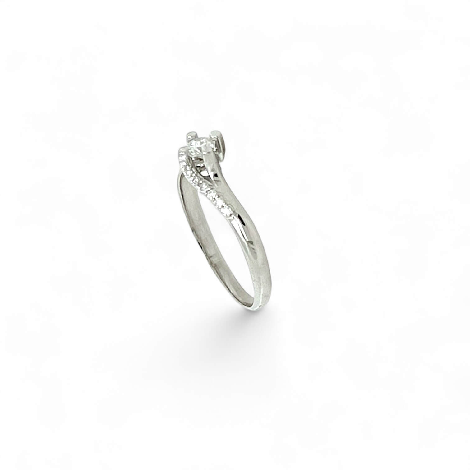 Il design è pulito e senza tempo, pensato per valorizzare la purezza del diamante e la lucentezza dell’oro. L’oro bianco 750 garantisce una base neutra che esalta i riflessi delle pietre, mentre la lavorazione rende la superficie morbida al tatto e raffinata allo sguardo.