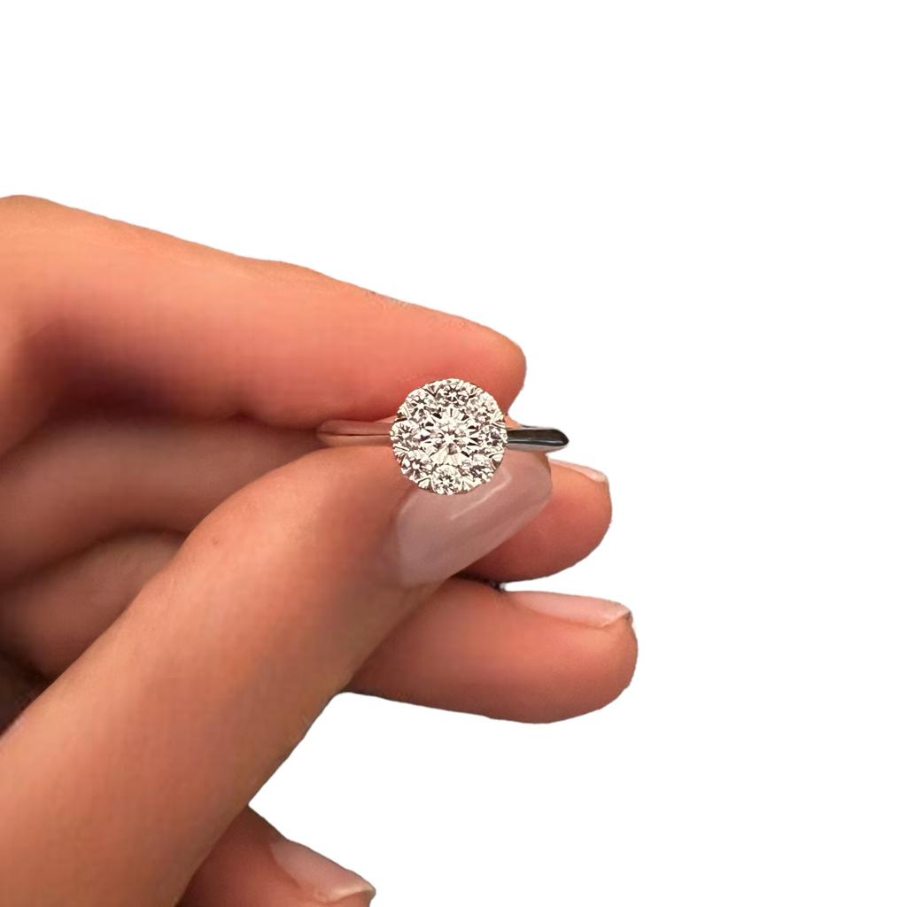 Il design elegante e la lavorazione artigianale rendono questo gioiello perfetto per celebrare momenti speciali, come un fidanzamento o un anniversario. Il pavé di diamanti che circonda la pietra centrale aggiunge un tocco di luce e raffinatezza, rendendo l’anello un simbolo di amore e impegno eterno. La struttura in oro bianco si abbina alla perfezione con la brillantezza dei diamanti, creando un effetto di pura eleganza.