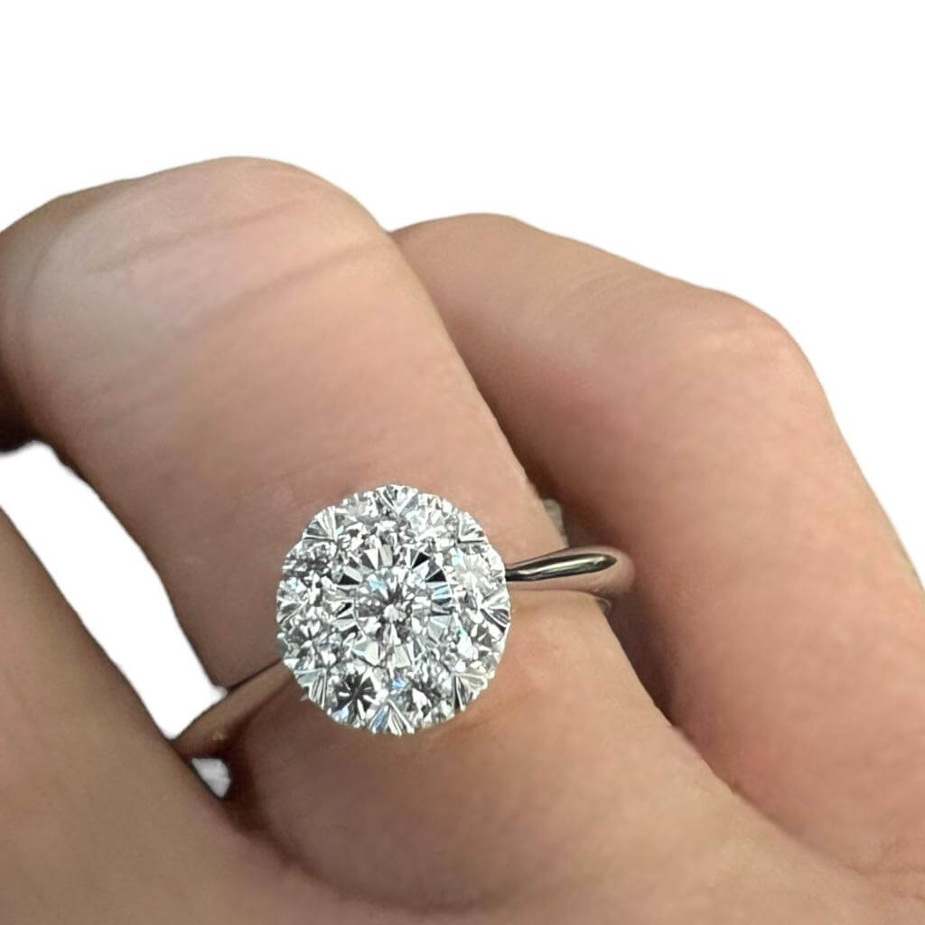 Anello solitario di diamanti in oro bianco 750% 18kt Cipolla dal 1950 gioielli collezione SETA, lavorazione artigianale,Diamanti 0,60 ct, colore E purezza VS1