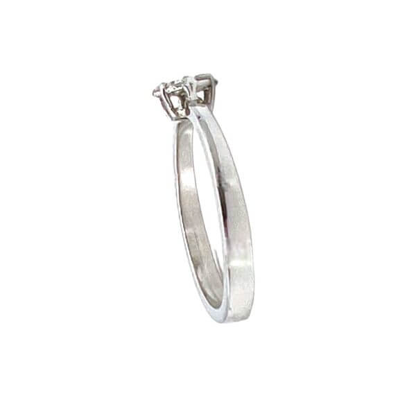 Anello solitario Cipolla dal 1950 Gioiellieri COLLEZIONE GOCCE DI DLUCE, lavorazione artigianale; montatura in oro bianco 750%, Diamante 0,21 ct colore F Purezza VS1.