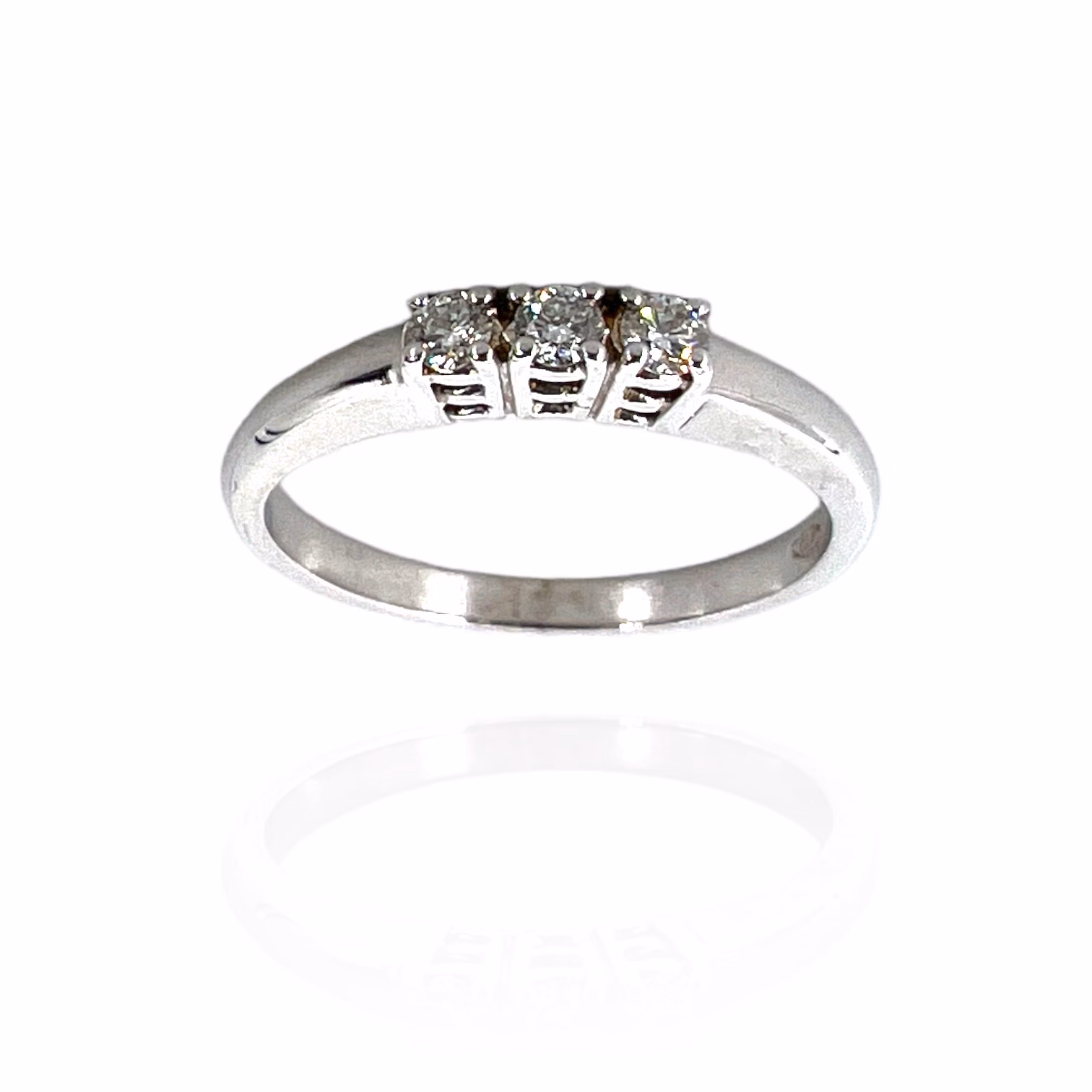 Anello trilogy oro bianco 750% 18kt CIPOLLA DAL 1950 GIOIELLI COLLEZIONE NOTE D’AMORE, diamanti 0,12ct colore F/vs1