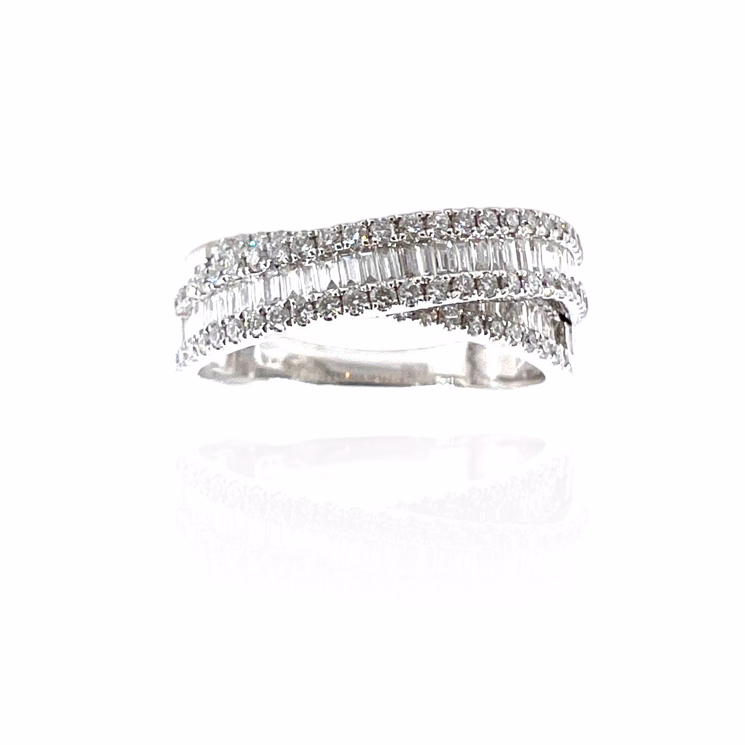 Veretta di diamanti Cipolla dal 1950 Gioiellieri Lavorazione artigianale Montatura in oro bianco 750% Diamanti peso 0,78 ct, taglio round brilliant e baguette, colore F purezza VVS1 Art. 24043RW
