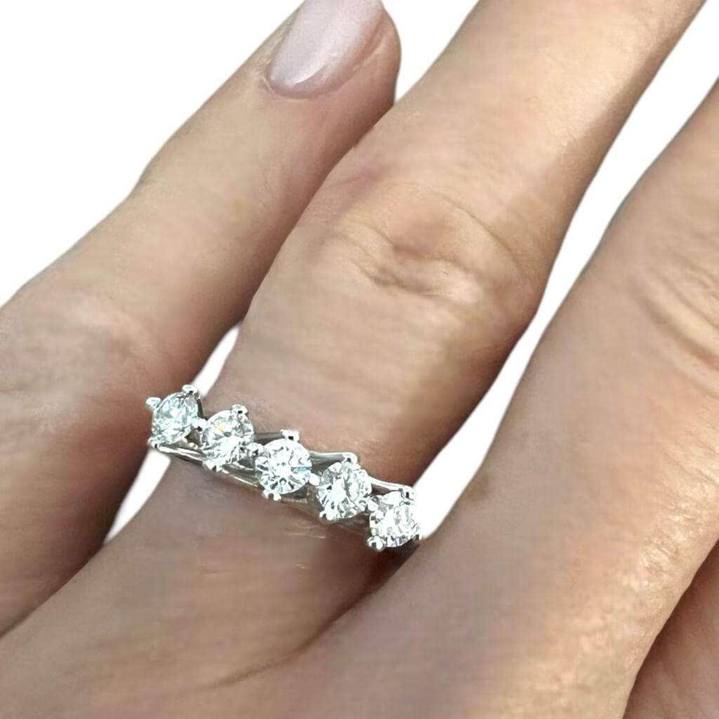 La montatura in oro bianco 750% (18 KT) crea un’elegante cornice per una sequenza di diamanti impeccabili. Con una caratura totale di 0,92 ct, i diamanti, con il loro colore F e la purezza VS1, emanano una luce straordinaria che cattura l’attenzione e riflette l’alta qualità che definisce la gioielleria Cipolla dal 1950 Gioiellieri.