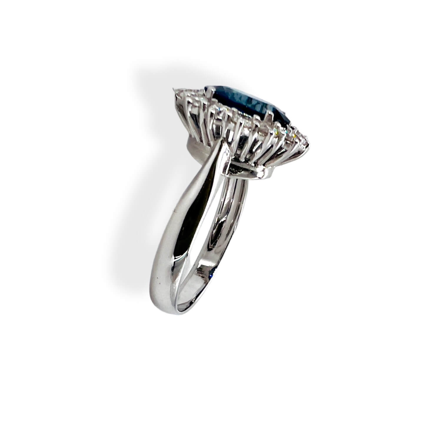 Anello in oro 750% 18kt Zaffiro e diamanti CIPOLLA DAL 1950 GIOIELLI BON TON lavorazione artigianale, diamanti peso ct 0,70 colore F purezza VS1 taglio brillante, zaffiro blu naturale peso ct 2,35 taglio ovale