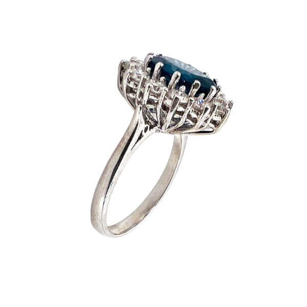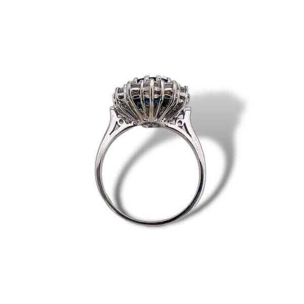Anello zaffiro blu oro bianco 750% 18ct CIPOLLA DAL 1950 GIOIELLI collezione BON TOM diamanti 0,94ct colore E/vs1 zaffiro blu 2,80 ct.