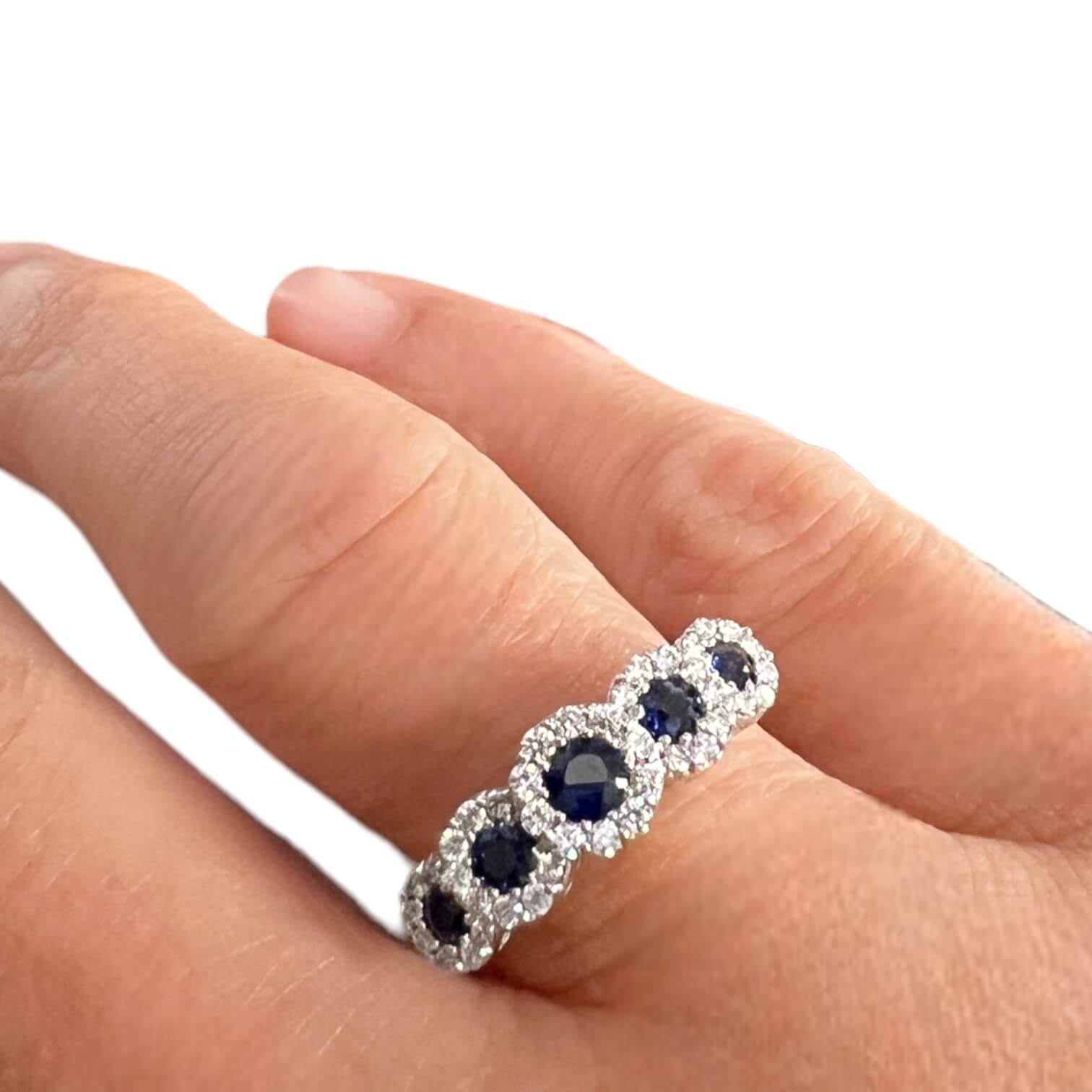 anello zaffiri blue oro bianco 750% diamanti 0,35 ct colore F/vs1 zaffiro blue 0,55 ct CIPOLLA DAL 1950 GIOIELLI ART. AN1189