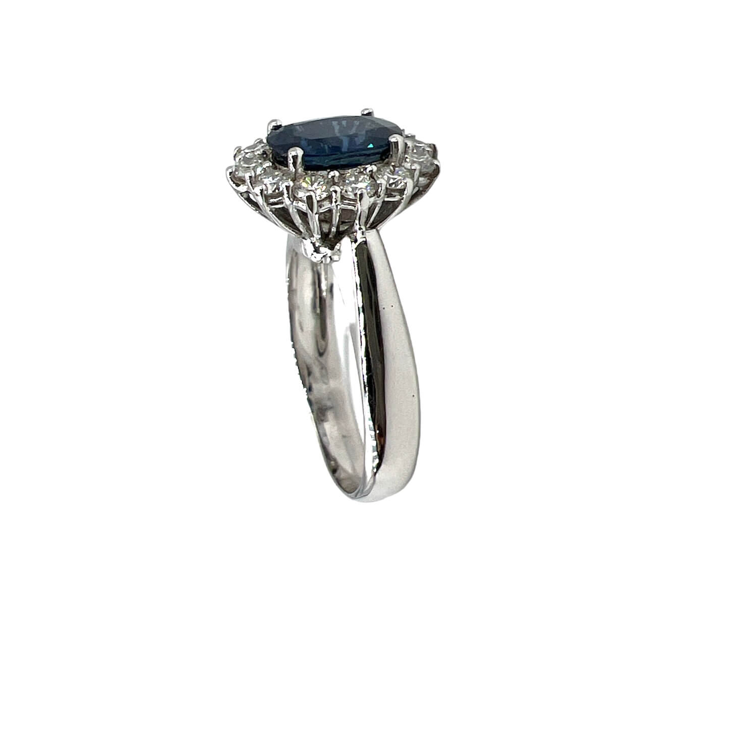 Anello con zaffiro e diamanti Cipolla dal 1950 Gioiellieri COLLEZIONE BON TON ,Lavorazione artigianale; Montatura in oro bianco 750% 18 kt Zaffiro Taglio ovale peso 1,86 ct. Diamanti peso 0,71 ct, taglio colore F purezza VVS2