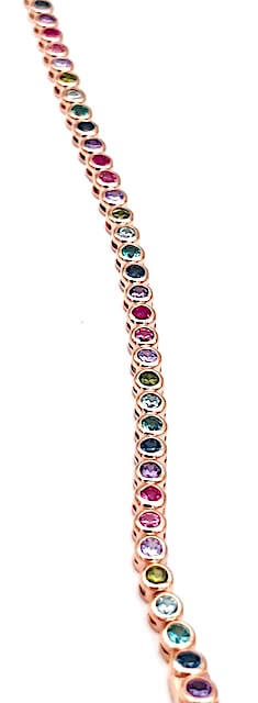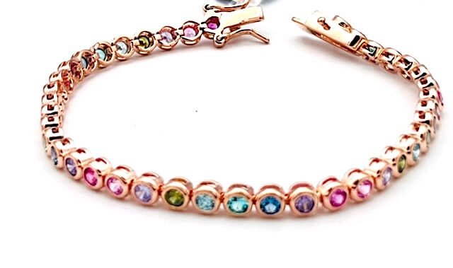 Bracciale tennis Cipolla dal 1950 Gioiellieri montatura in argento 925% rosemis cm 18 , cristalli rainbow