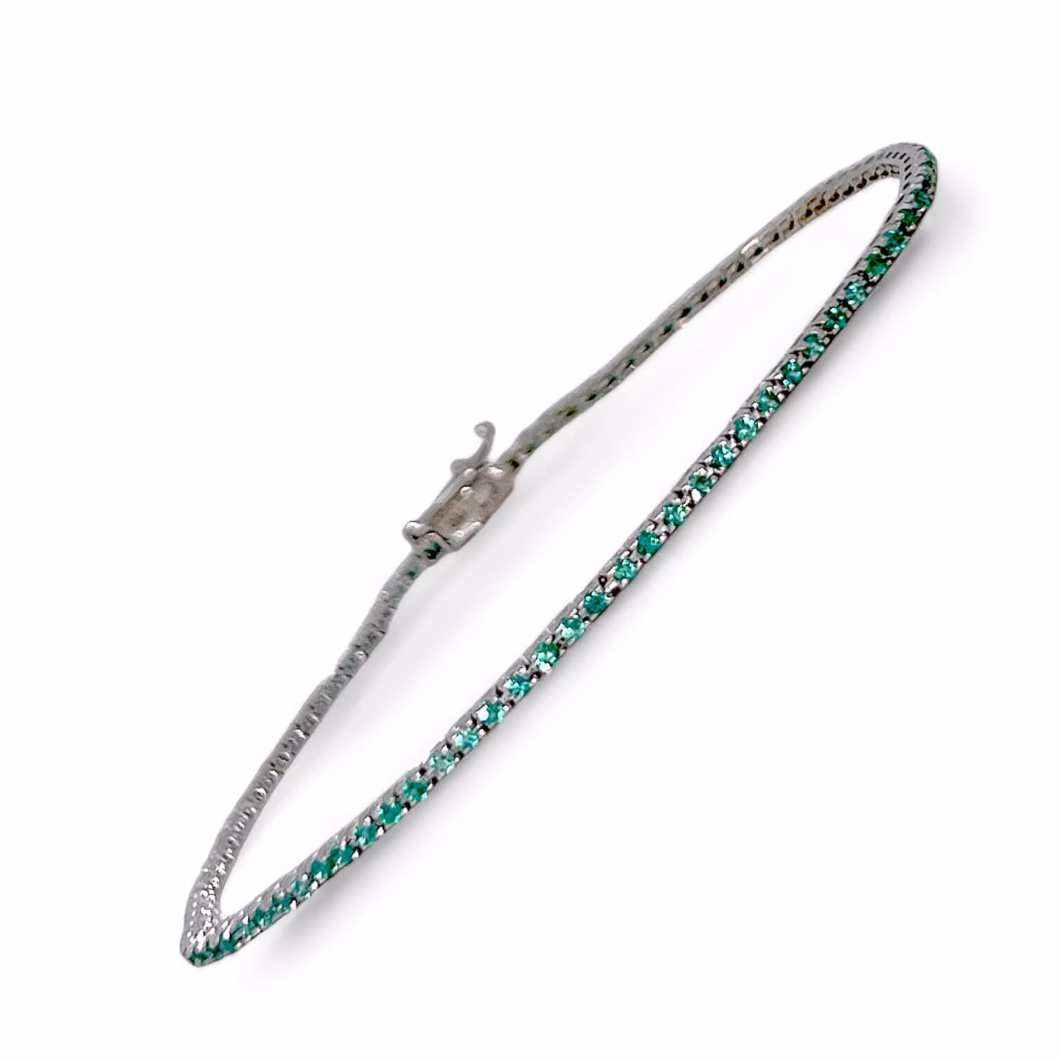 Questo bracciale tennis della collezione Tennis di Cipolla dal 1950 Gioiellieri rappresenta un connubio perfetto di sofisticata artigianalità e bellezza naturale. La montatura in oro bianco 750‰ 18 kt conferisce al bracciale una lucentezza che esalta la vivacità dei smeraldi, tagliati con maestria per valorizzare il loro colore intenso e brillante. La chiusura a baionetta con doppia sicurezza garantisce non solo un design elegante, ma anche una perfetta tenuta e sicurezza, permettendo di indossare il bracciale con serenità.