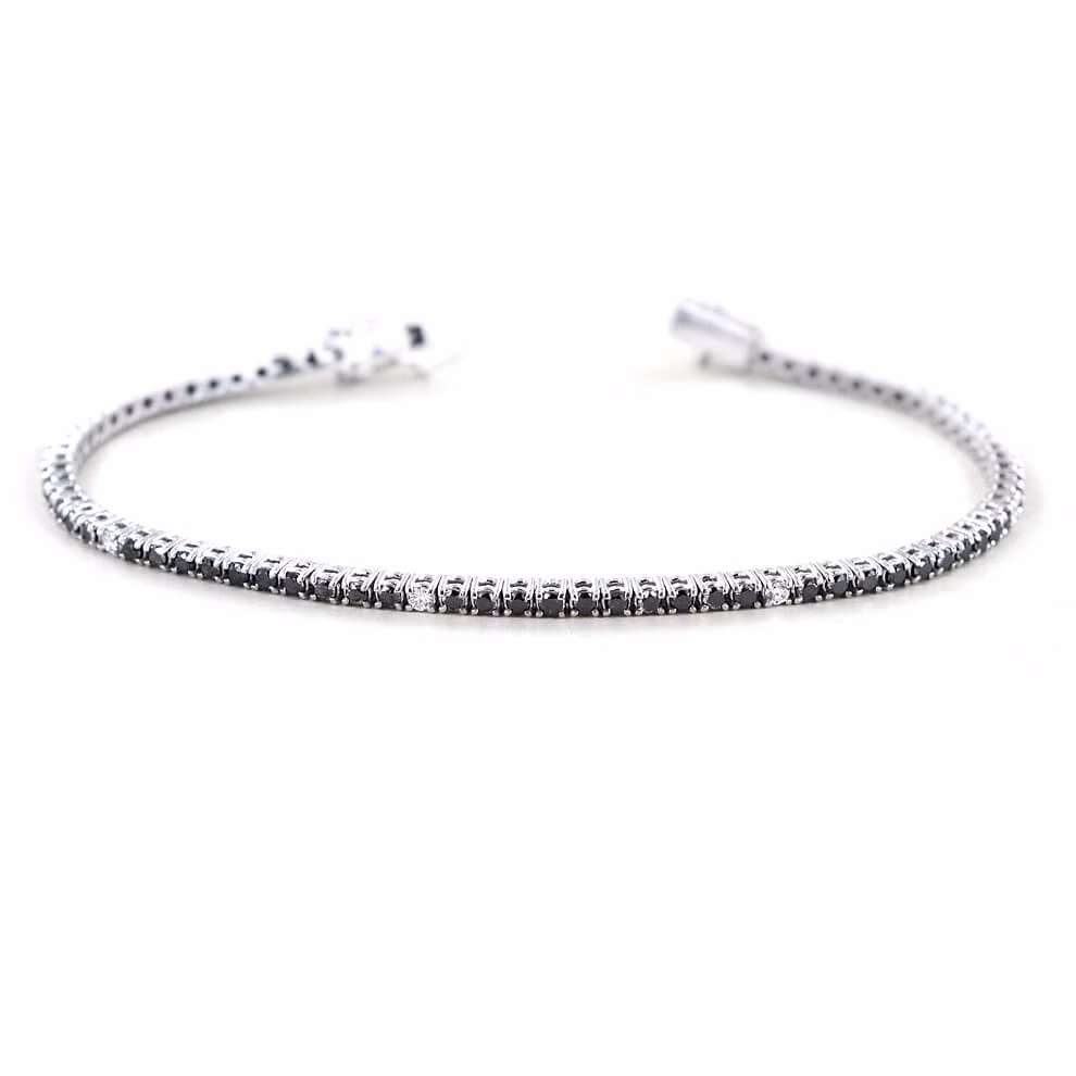 Bracciale tennis in oro bianco 750%,Diamanti neri peso 1,40, diamanti 0,10 colore G purezza VS1