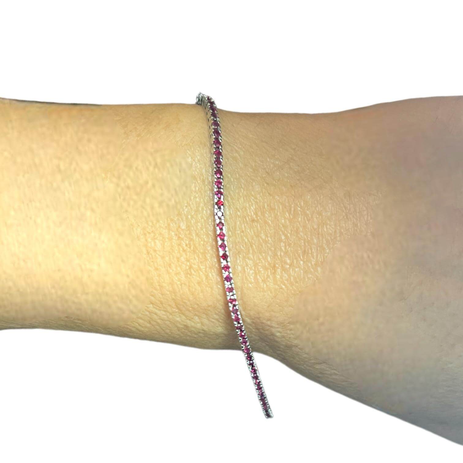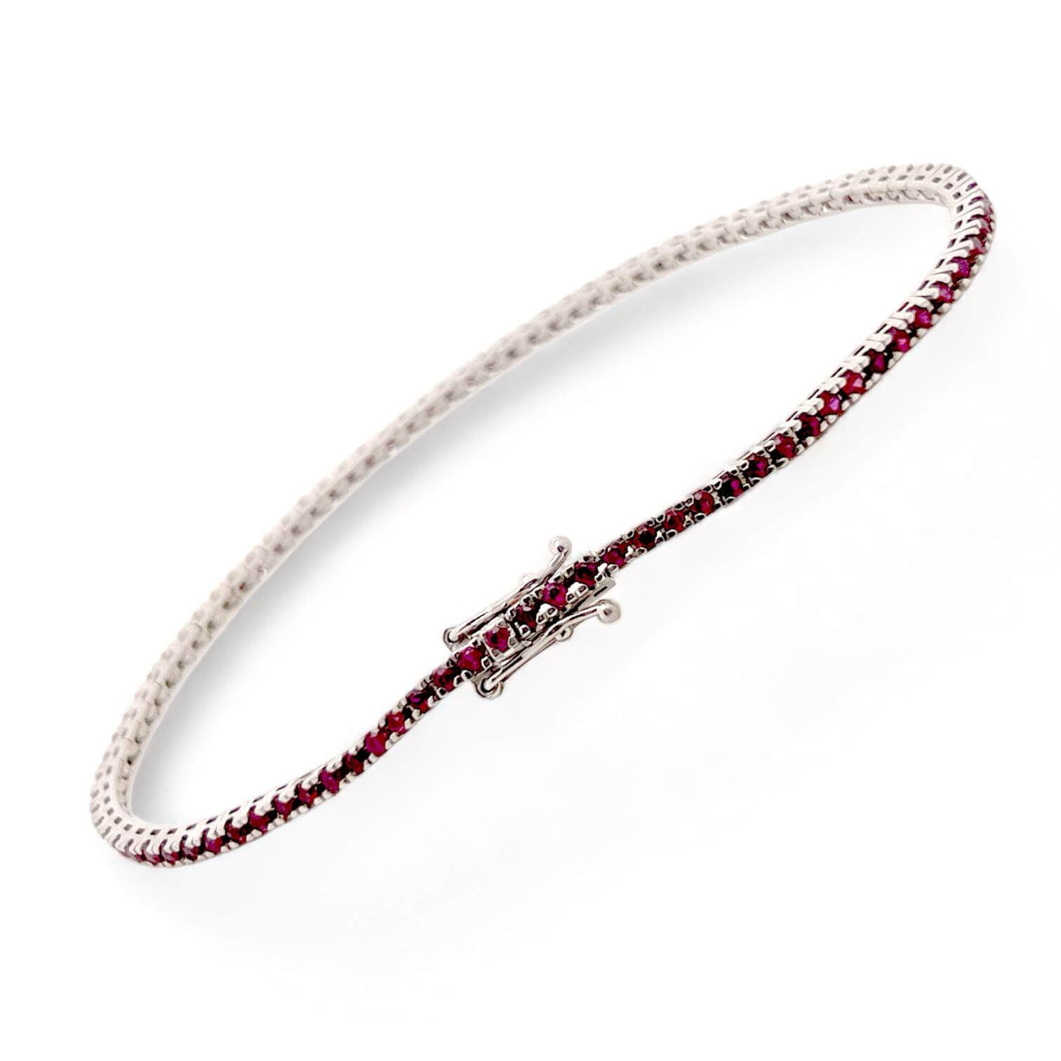 Bracciale tennis oro bianco 750% 18kt CIPOLLA DAL 1950 GIOIELLI, lavorazione artigianale rubini 1,56 ct taglio rotondo