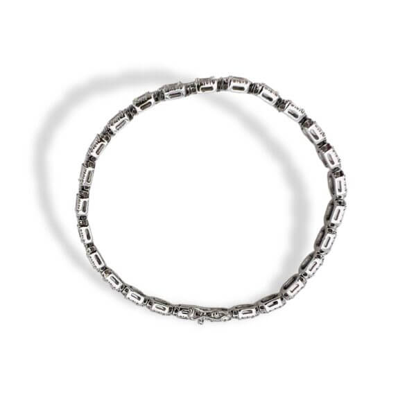 Bracciale tennis in oro bianco 750% 18kt Cipolla dal 1950 gioielli, lavorazione artigianale , diamanti centrali peso 4,90 ct colore E purezza VS2 taglio Smeraldo, diamanti a contorno peso 1,75 ct colore E purezza VS2 taglio brillante art. 9131/10