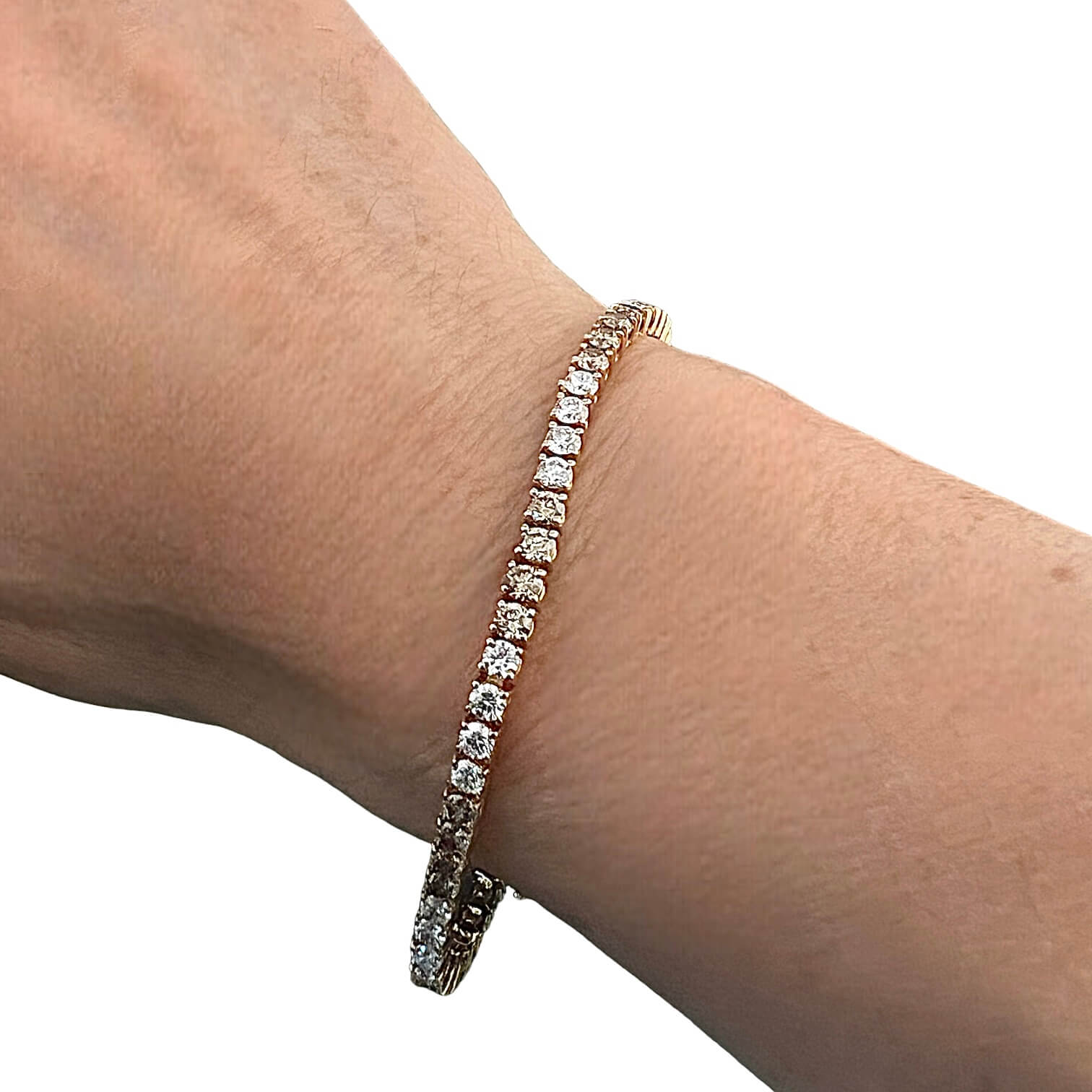 Bracciale tennis in oro rosa 750% 18KT CIPOLLA DAL 1950 GIOIELLI, lavorazione artigianale,diamanti brown 2,66 ct, diamanti 2,33 colore F purezza vs1