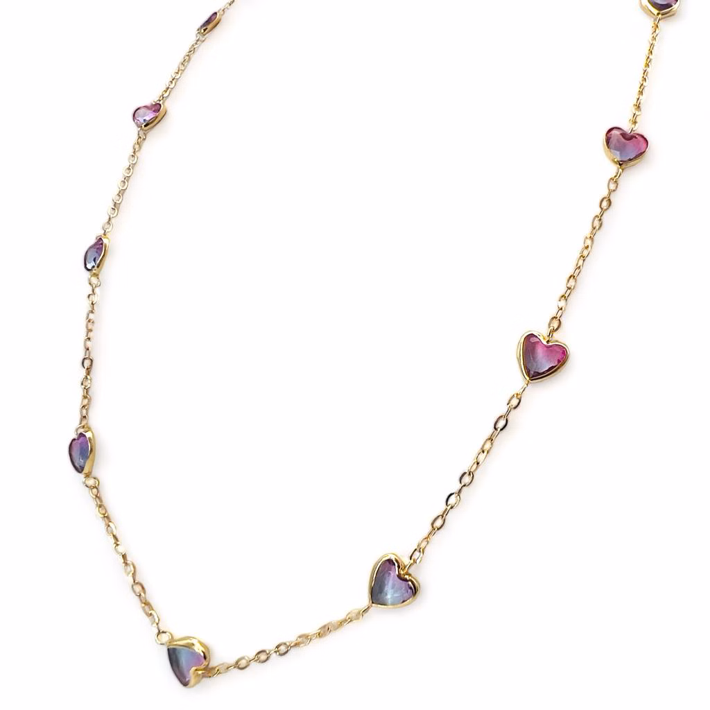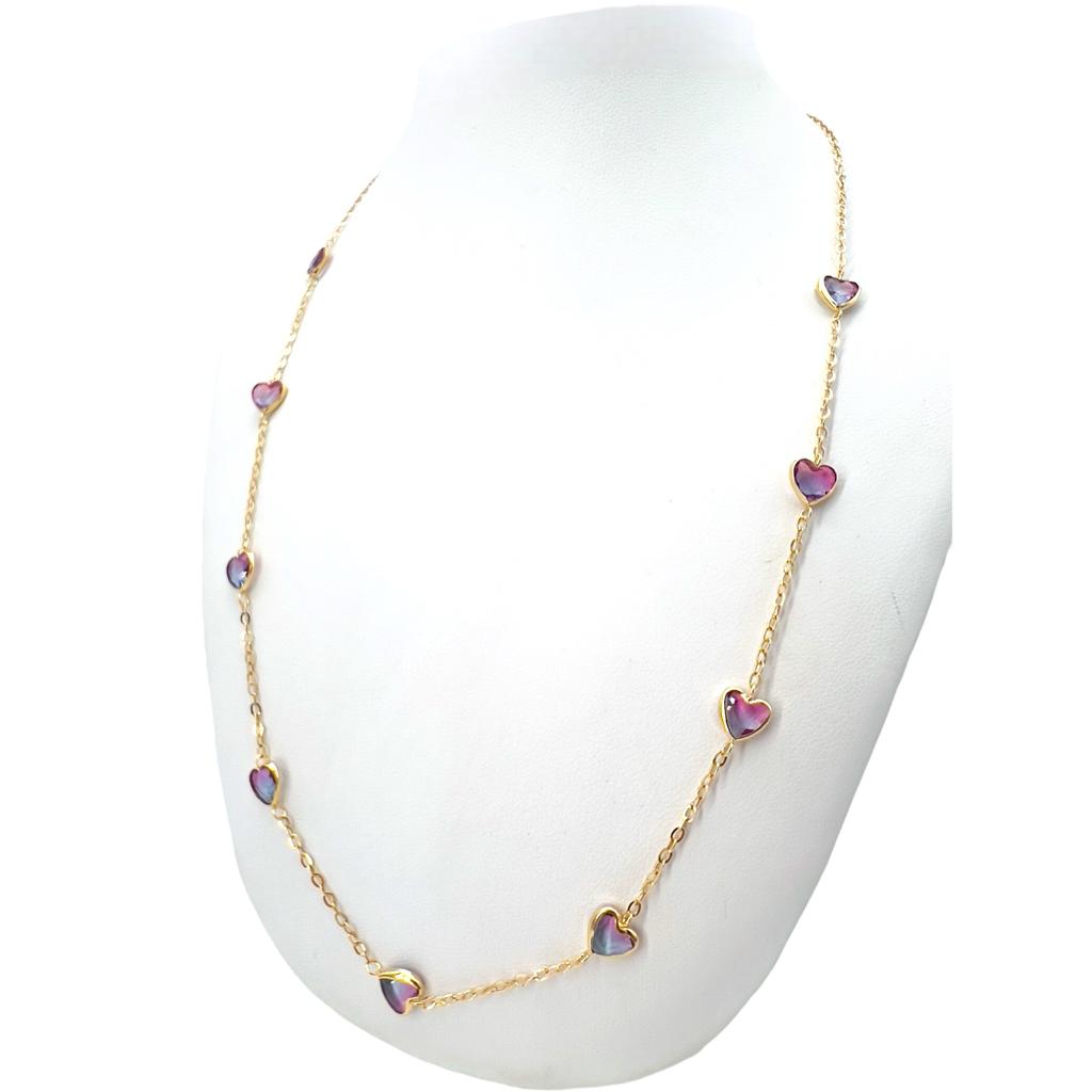 Collana girocollo Cipolla dal 1950 Gioielli maglia catena in oro giallo 750% 18 kt,peso grammi 2,31 quarzi naturali taglio cuore