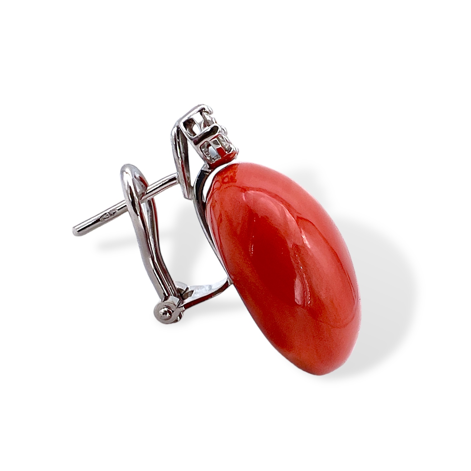 Orecchini di corallo a bottone in oro bianco 750% 18kt Cipolla dal 1950 gioielli lavorazione artigianale, corallo del mediterraneo diamanti ct 0,45 colore F purezza VS1