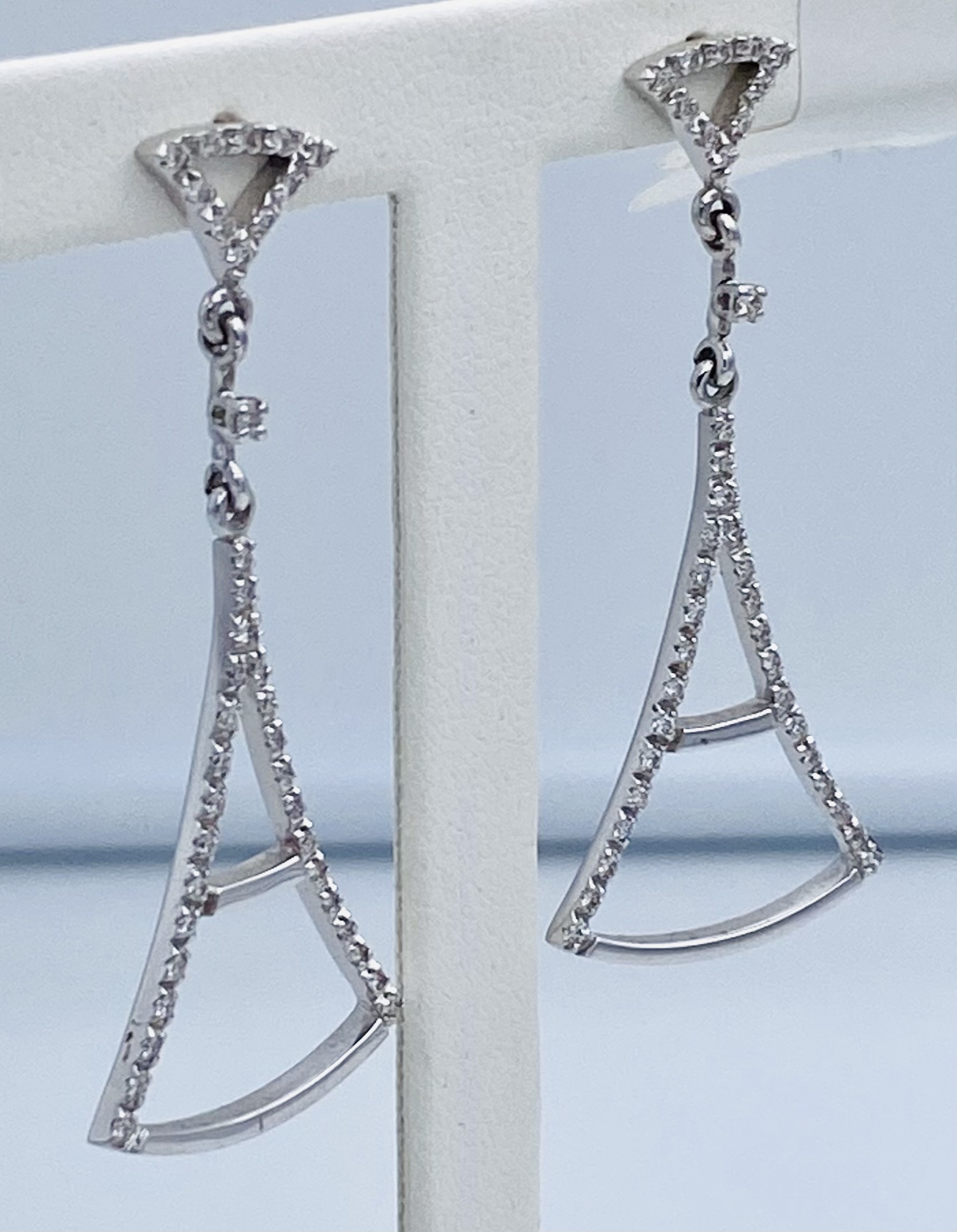 Orecchini di diamanti in oro bianco 750% 18 kt, peso 0,61 ct colore F purezza VVS2