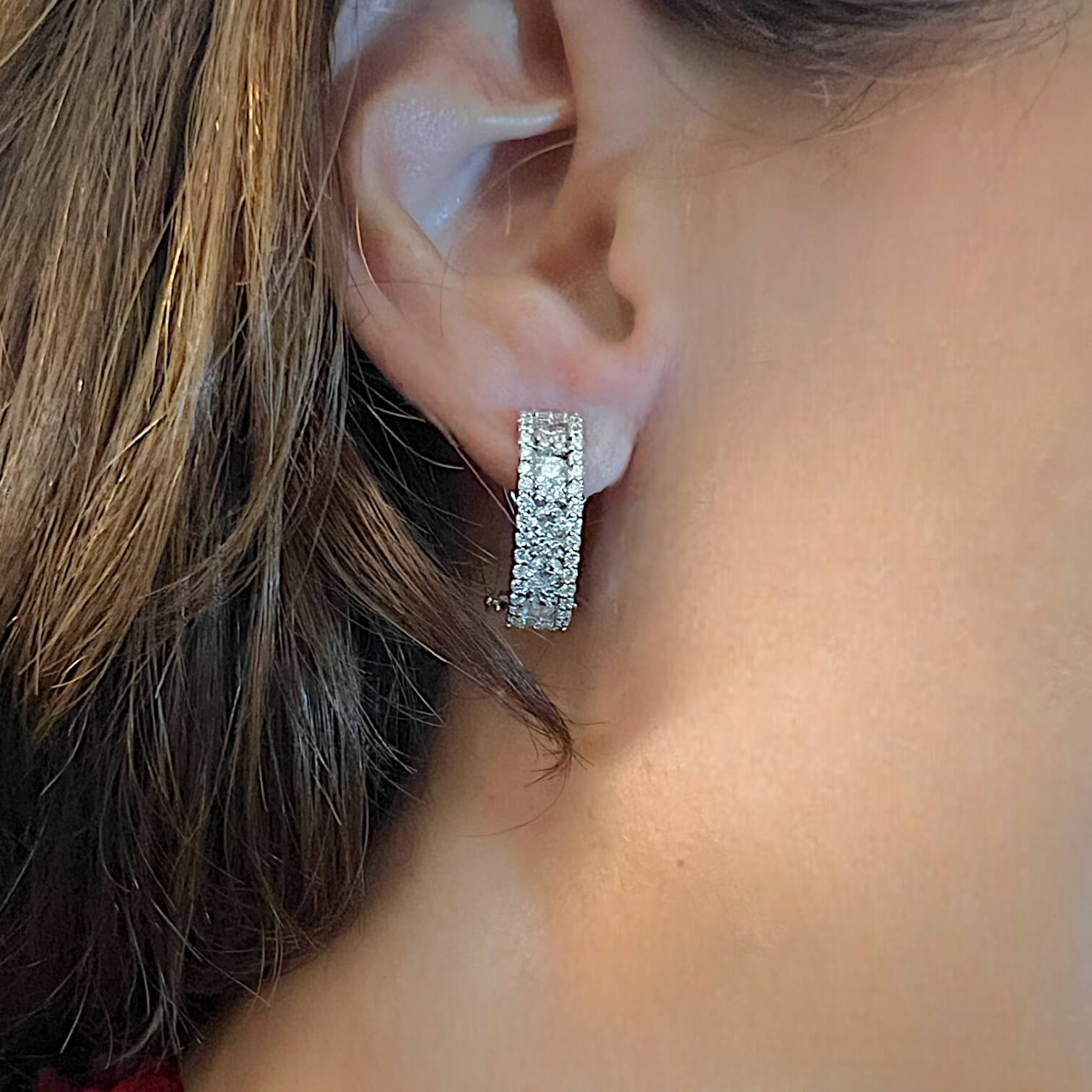 Gli orecchini di diamanti della collezione Cipolla dal 1950 Gioiellieri incarnano la perfetta combinazione di lusso e maestria artigianale. Realizzati in oro bianco 750% 18kt, questi orecchini sono caratterizzati da una chiusura a clip che unisce comfort e sicurezza. I diamanti, dal taglio brillante e con una caratura complessiva di 1,60 ct, presentano un colore F e una purezza VS1, elementi che garantiscono una luminosità eccezionale e una qualità impeccabile.