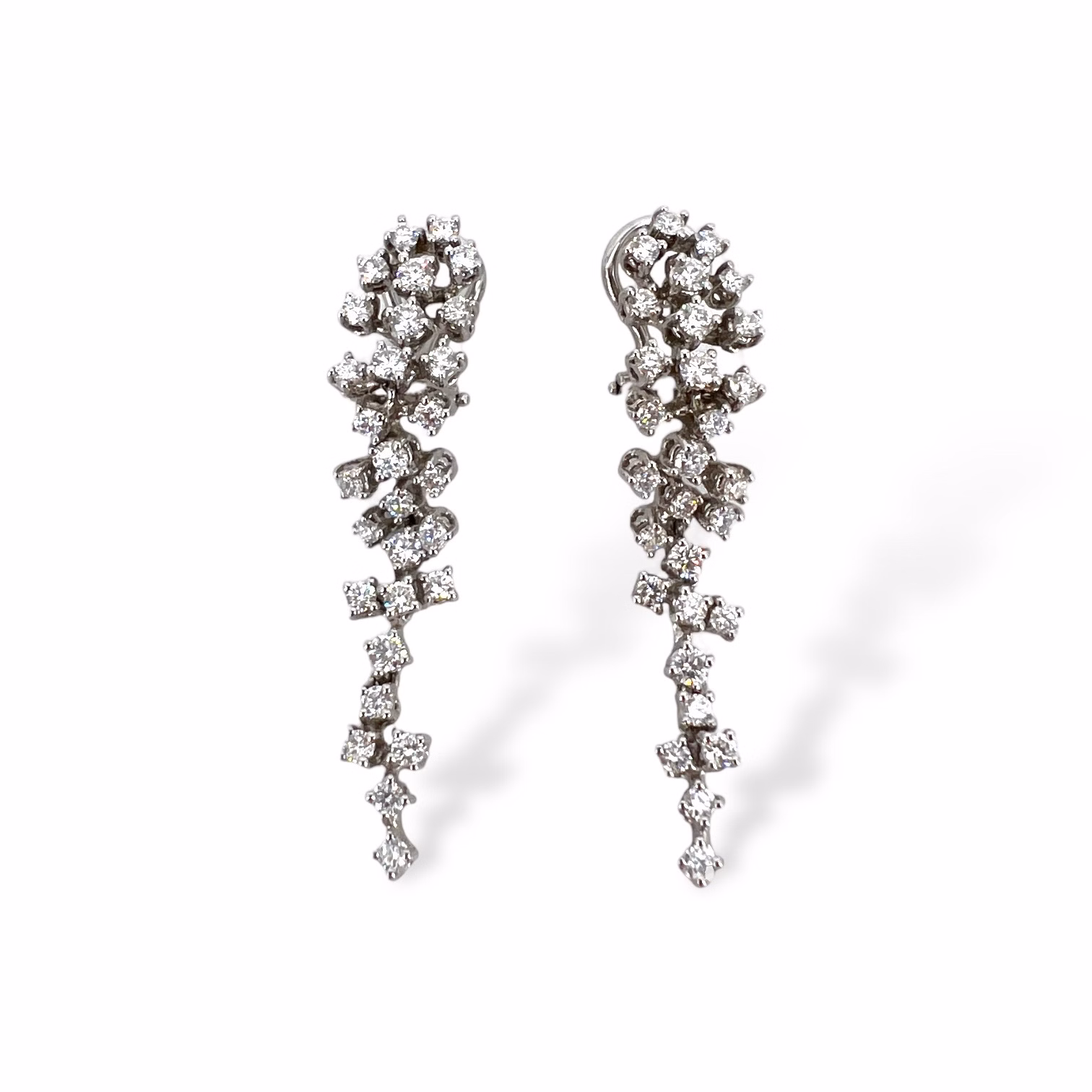 Orecchini di diamanti pendenti oro bianco 750% 18kt Cipolla dal 1950 gioielli, lavorazione artigianale, diamanti peso 1,98 ct taglio brillante colore F purezza VVS1 Art. OR673