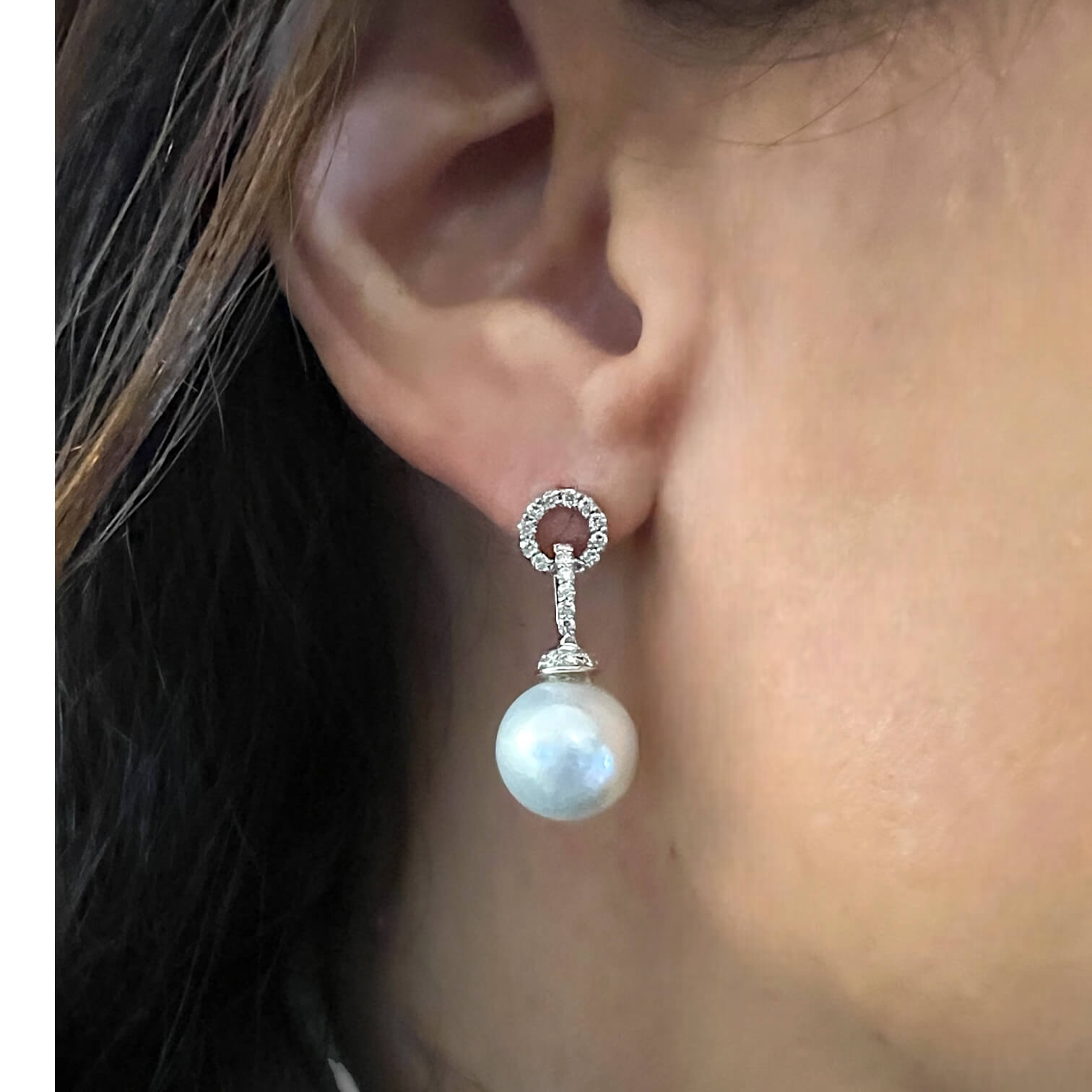 Orecchini perla oro bianco 750% diamanti 0,28 ct colore F/vs1 perle Australiane 18,00 Ct CIPOLLA DAL 1950 GIOIELLI ART. ORP208
