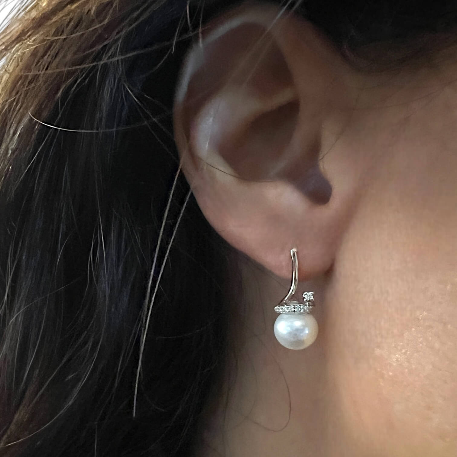 Caratteristiche del prodotto Orecchini perle oro bianco 750% diamanti art. ORP192