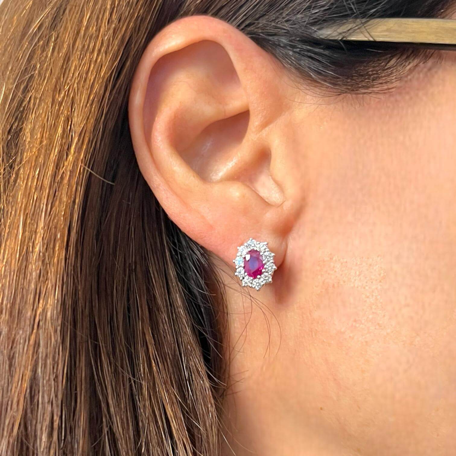 Orecchini in oro bianco 750%,lavorazione artigianale Cipolla dal 1950 gioielli COLLEZIONE BON TON, rubini ct 1,64 taglio ovale, diamanti ct 0,60 taglio ovale purezza VS1 colore F