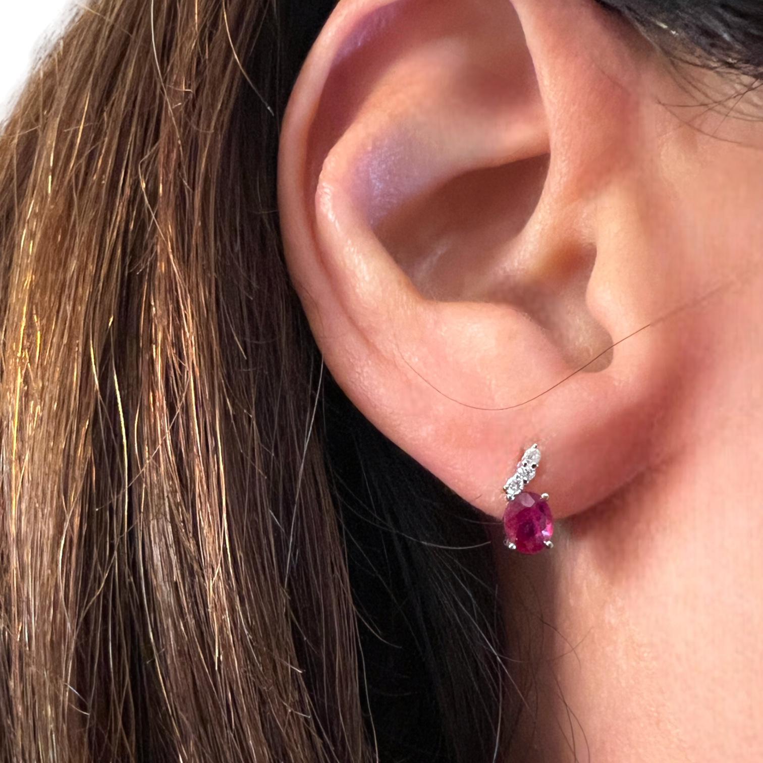Orecchini in oro bianco 750% 18 kt CIPOLLA DAL 1950 GIOIELLI, lavorazione artigianale Cipolla dal 1950 Gioiellieri, rubini ct 0,82 taglio ovale Diamanti ct 0,07 taglio brillante purezza SI1 colore F
