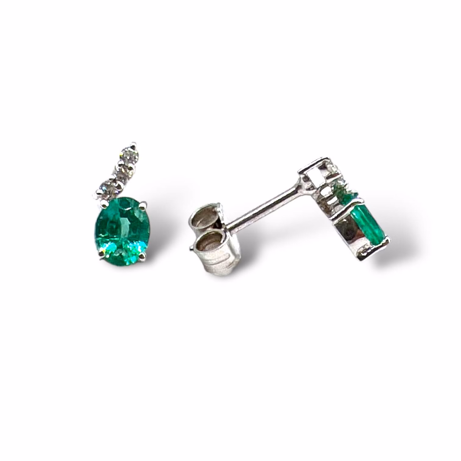 Orecchini smeraldo e diamanti in oro bianco 750% GEMME Diamanti 0,06 ct colore F purezza VS1, Smeraldi caratura 0,56 ct