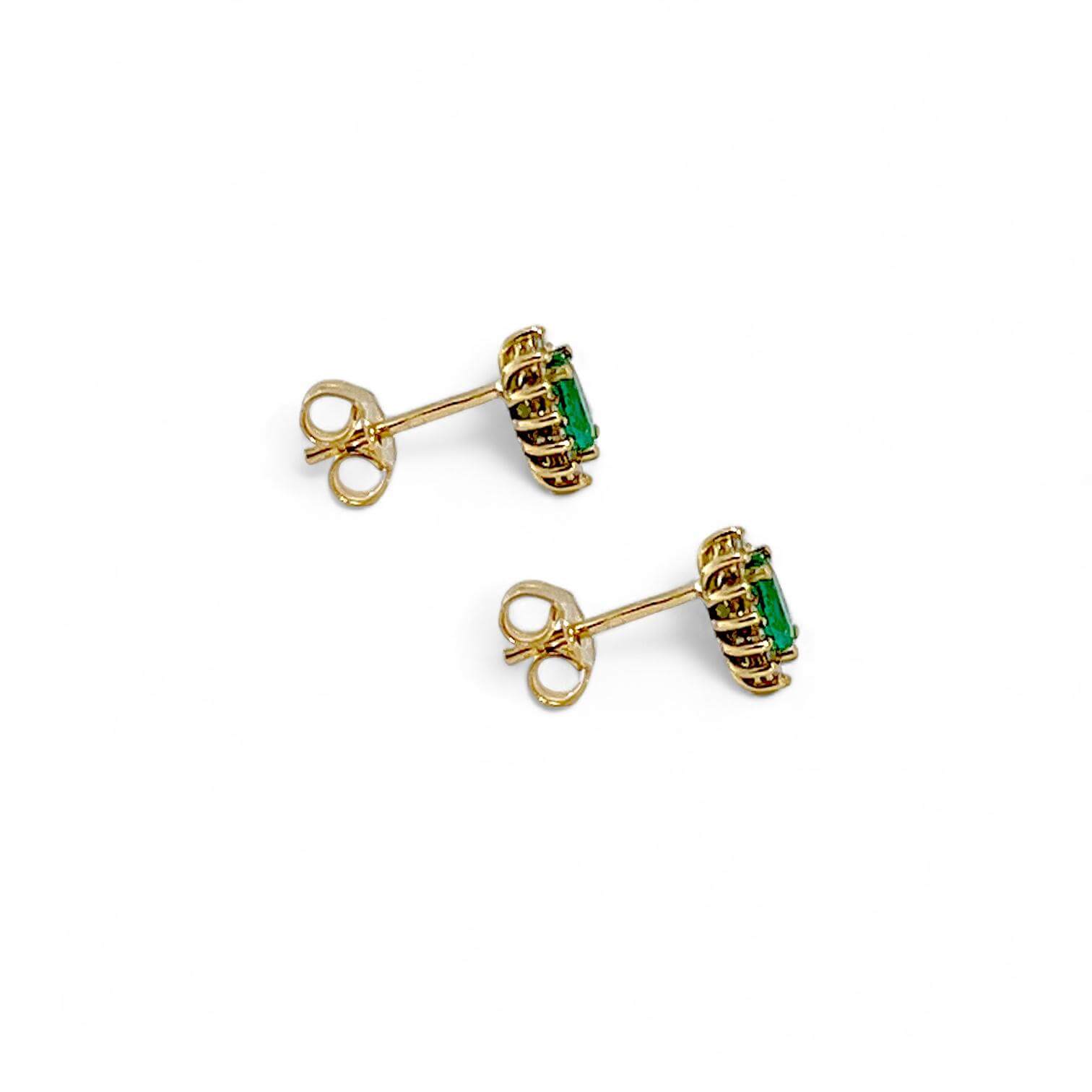 Orecchini smeraldo e diamanti Cipolla dal 1950 Gioiellieri COLLEZIONE BON TON ; Montatura in oro GIALLO 750% 18 kt, Diamanti 0,07 ct colore F purezza SI, Smeraldi caratura 0,40 ct taglio ovale
