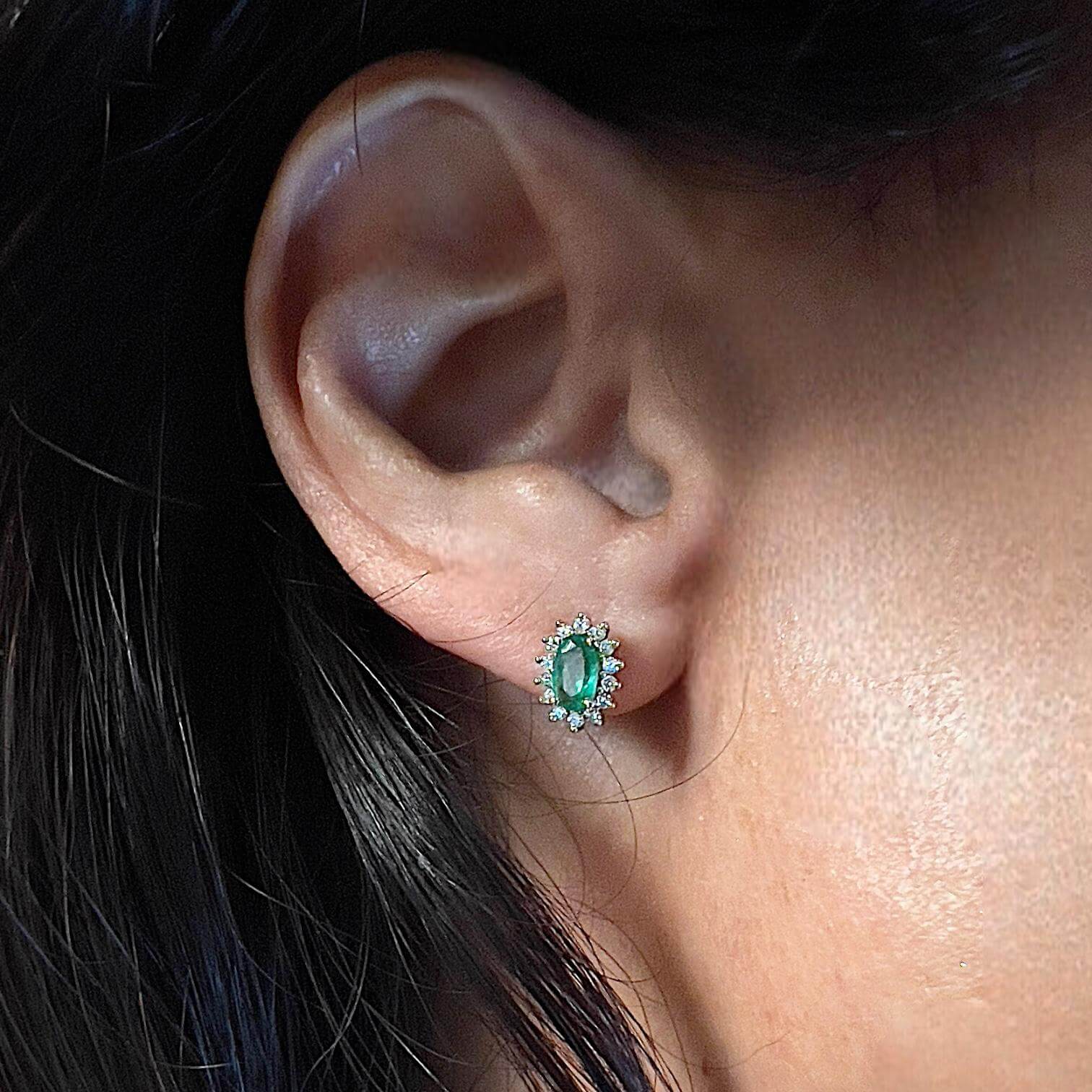 Orecchini smeraldo e diamanti in oro bianco 750% Diamanti 0,07 ct colore F purezza SI, Smeraldi caratura 0,40 ct