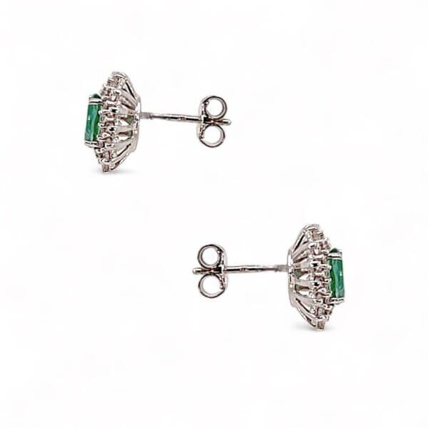 Orecchini smeraldi e diamanti lavorazione artigianale Cipolla dal 1950 Gioiellieri collezione bon ton; Montatura in oro bianco 750% 18 KT Diamanti 0,56 ct colore F purezza VS1 taglio brillante, Smeraldi peso 0,90 ct taglio ovale