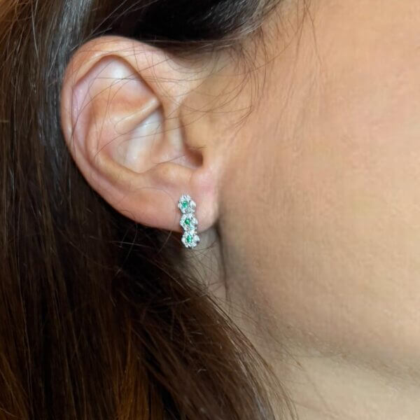 Orecchini smeraldi oro bianco 750% BELLE EPOQUE diamanti ct 0,47 colore F/vs1 smeraldi Colombia 0,10 ct CIPOLLA DAL 1950 GIOIELLI ART. OR611