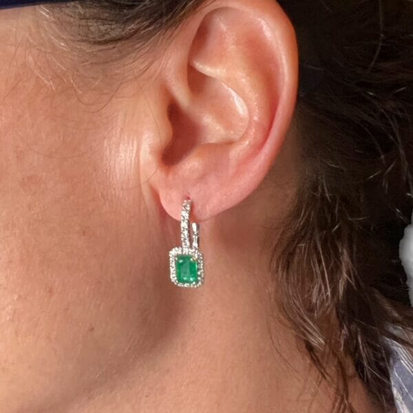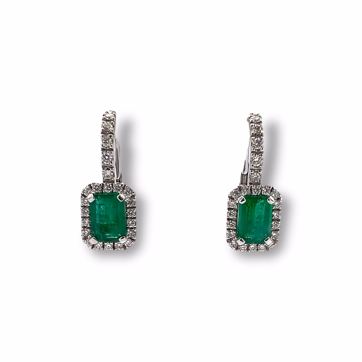 Orecchini smeraldi oro bianco 750% BELLE EPOQUE diamanti 0,46 ct colore F purezza VS1, Smeraldi naturali 2,01 ct CIPOLLA DAL 1950 GIOIELLI ART. OR454