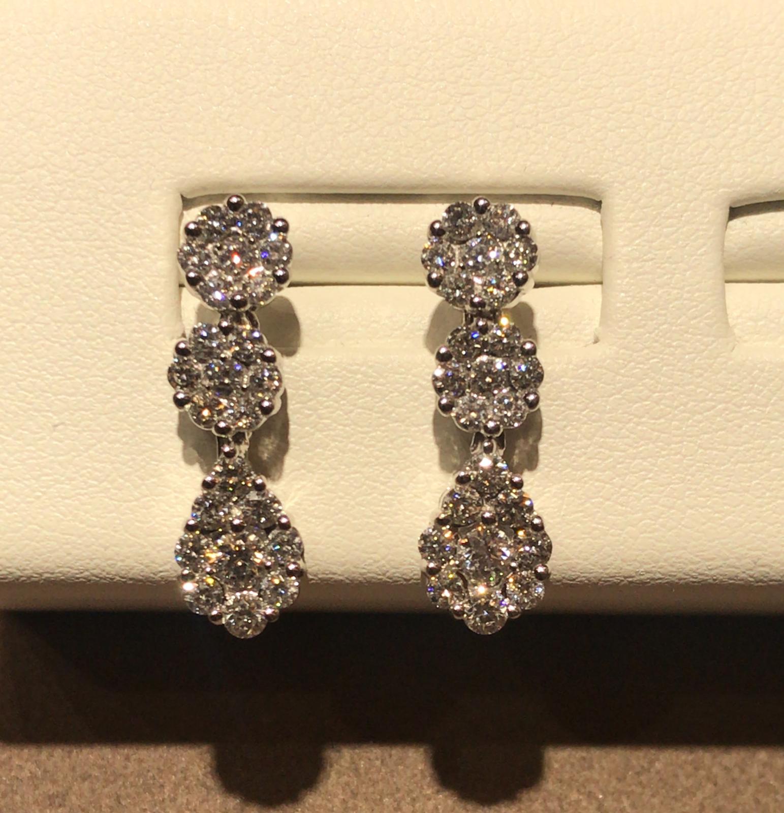 Orecchini trilogy oro bianco 750% diamanti 1,61 ct colore F/vvs1