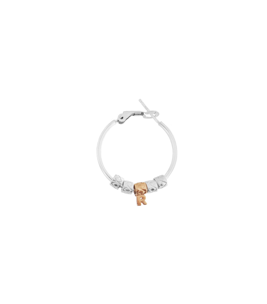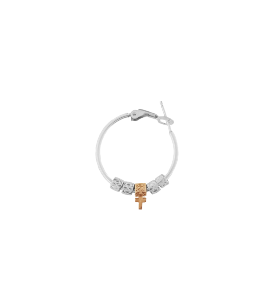Orecchino a cerchio in argento 925°/°° diametro 2,5 cm ed elementi small in argento e oro 9kt (il singolo pezzo)..