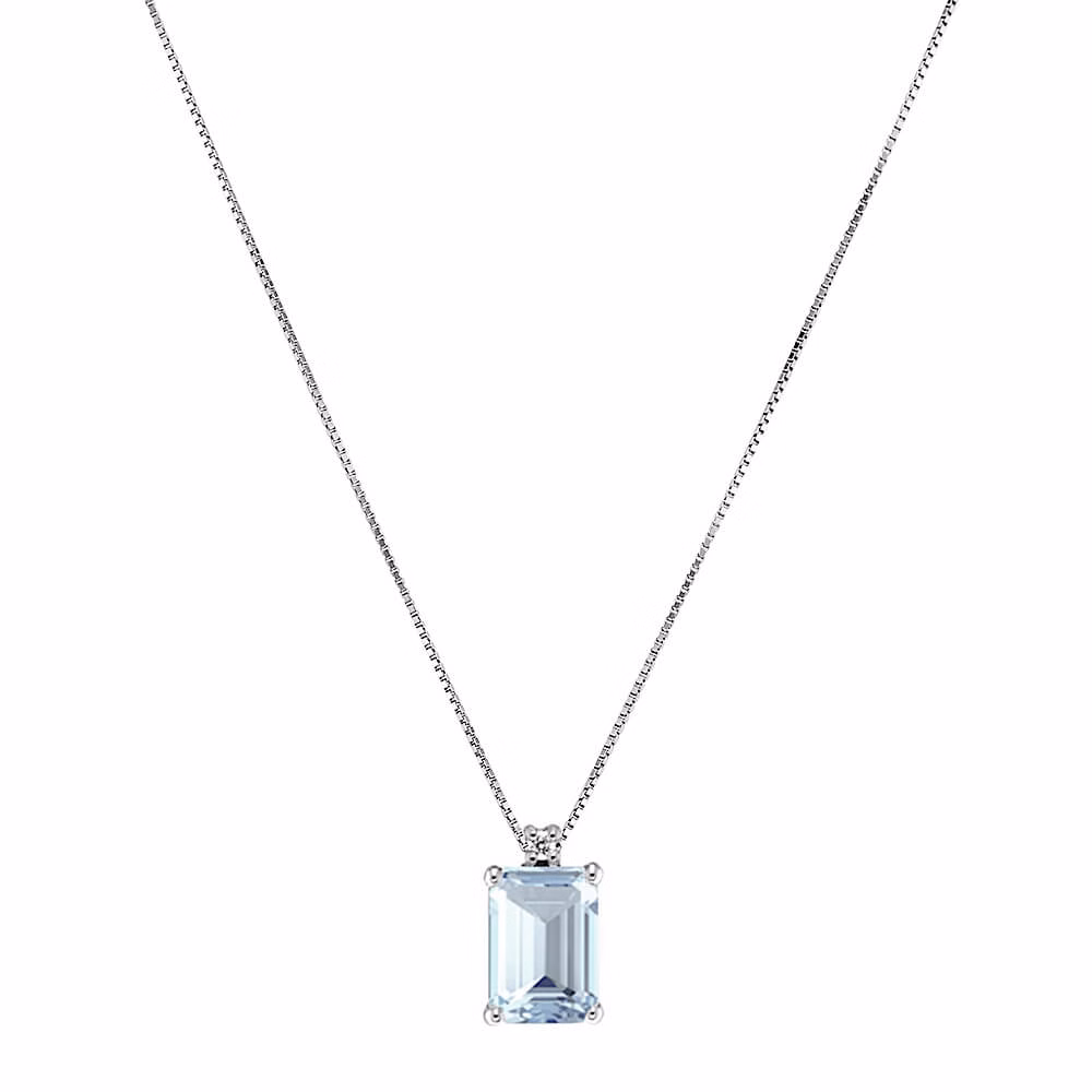 Girocollo con pendente acquamarina e diamanti in oro bianco 750% GEMME, Acquamarina 0,55 ct, Diamante 0,01 ct colore F purezza VS1 CIPOLLA DAL 1950 GIOIELLI art.GI-1666-16-1
