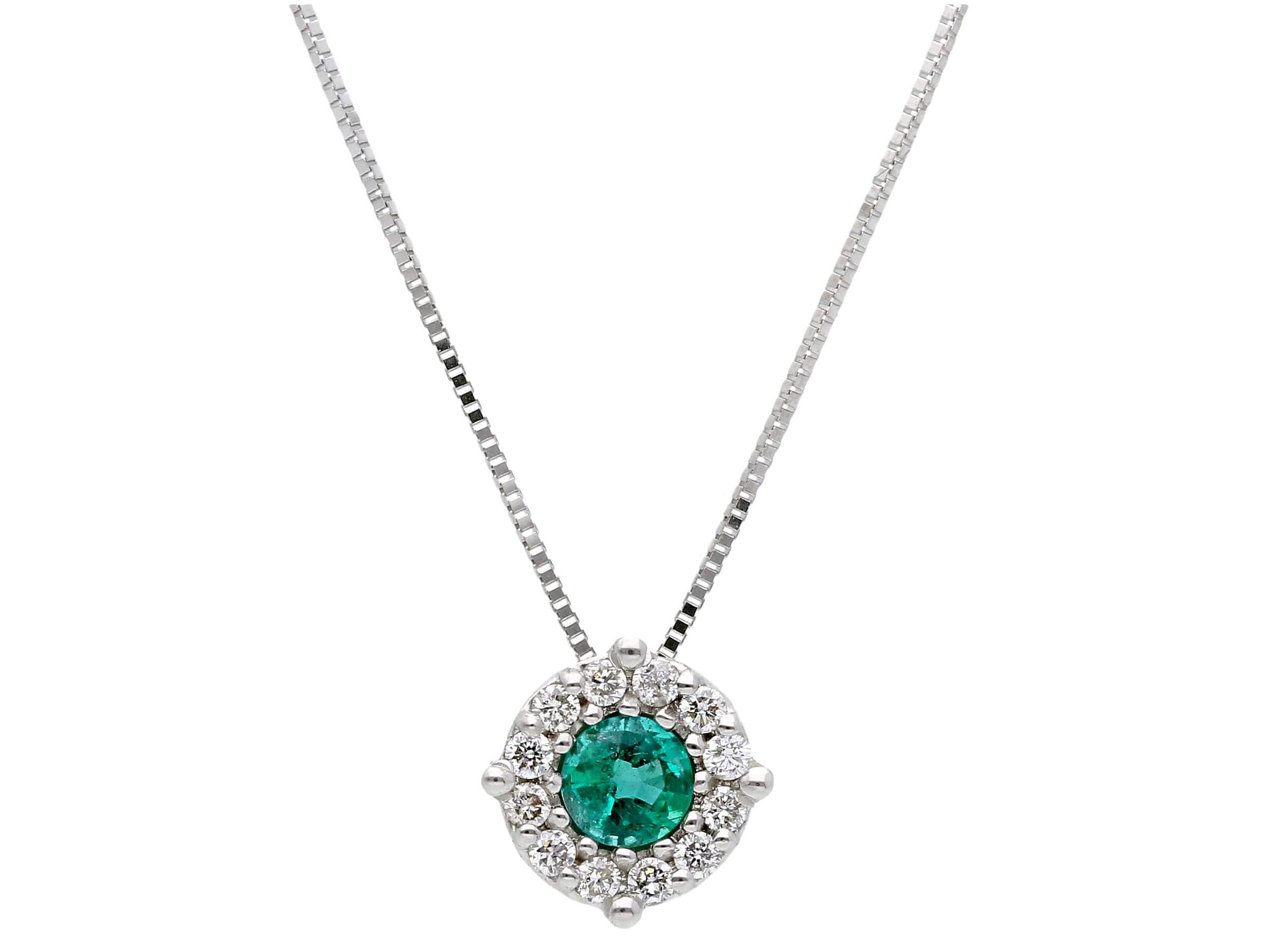 Girocollo smeraldo e diamanti oro bianco 750% BELLE EPOQUE Diamanti 0,11 Ct colore F purezza VS1 Smeraldo 0,07 Ct ART. CD479-1
