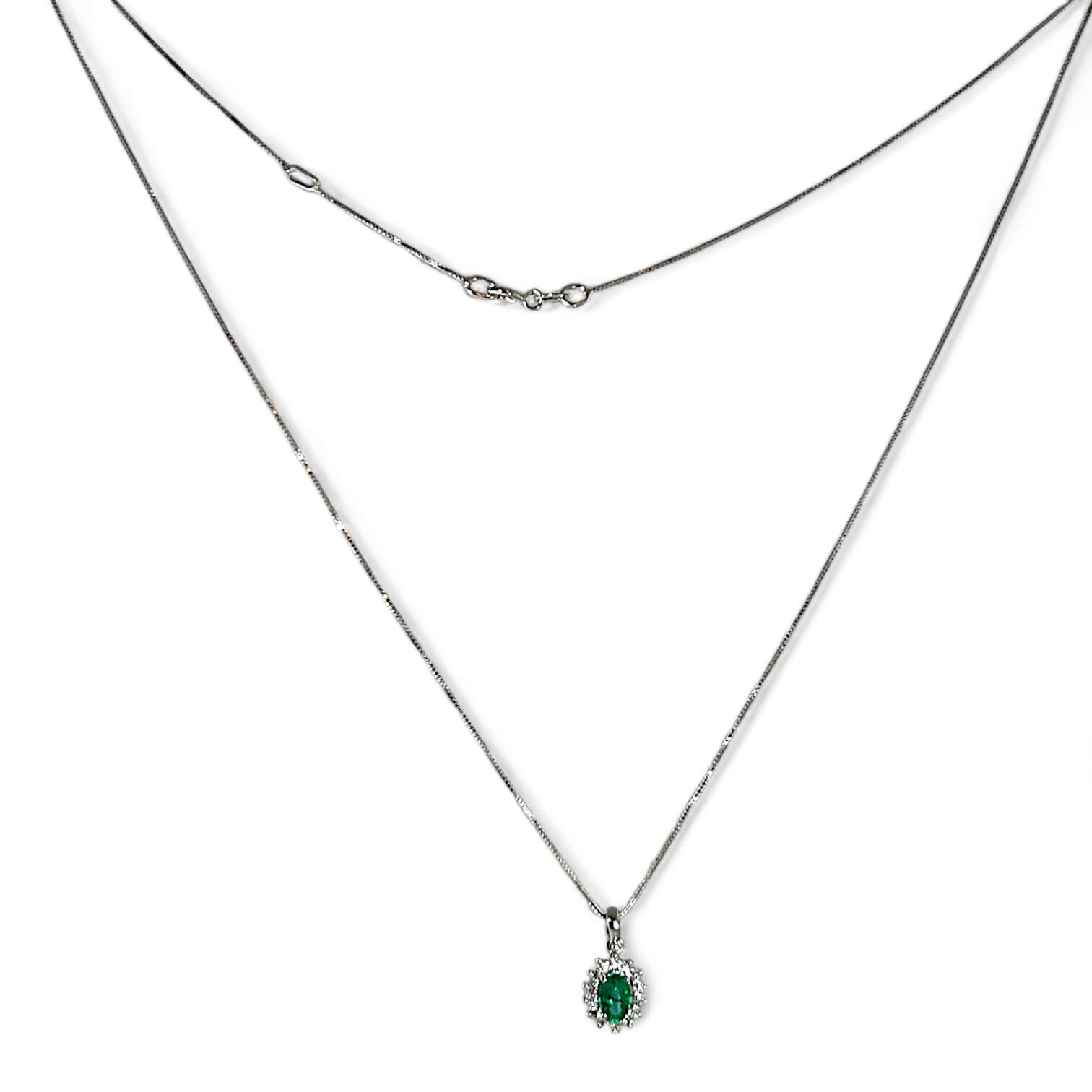 Girocollo smeraldo e diamanti oro bianco 750% BON TON Diamanti 0,20 Ct colore F purezza VS1 Smeraldo taglio ovale peso 0,38 Ct CIPOLLA DAL 1950 GIOIELLI ART. CD144