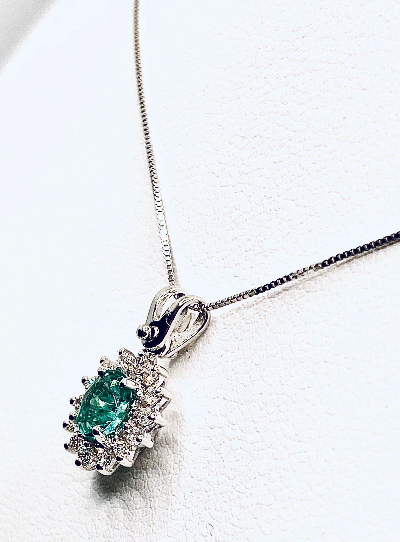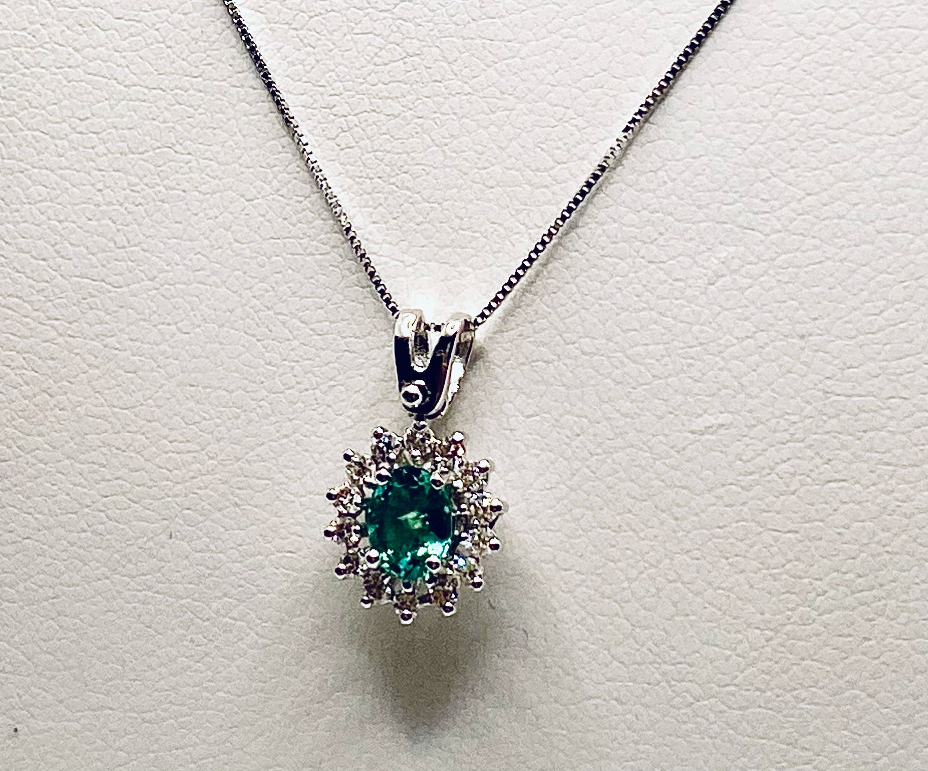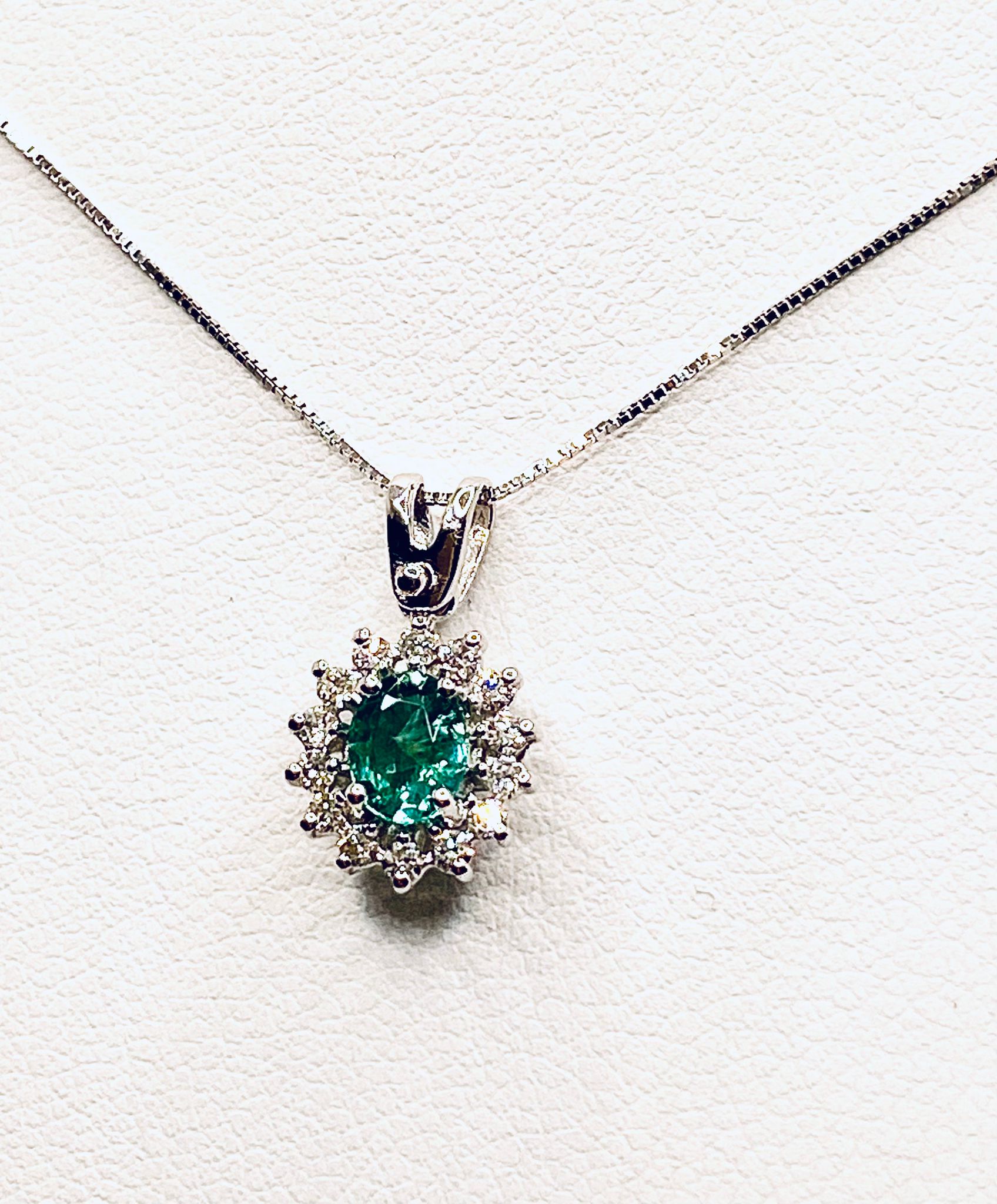 Pendente smeraldo e diamanti oro bianco 750% BON TON Diamanti 0,15 Ct colore F purezza VS1 Smeraldo taglio ovale peso 0,32 Ct CIPOLLA DAL 1950 GIOIELLI ART. CD799
