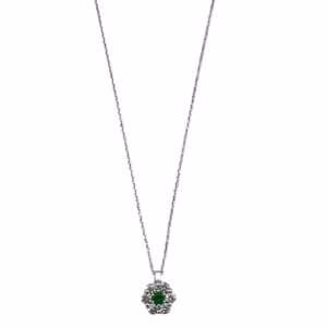Girocollo smeraldo e diamanti oro bianco 750% FIORE Diamanti 0,13 Ct colore F purezza VS1 Smeraldo 0,03 Ct CIPOLLA DAL 1950 GIOIELLI ART. CD807
