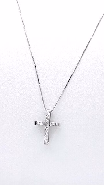 Pendente croce con diamanti in oro bianco 750% Diamanti peso 0,16 Ct colore F purezza VS1 Catenina