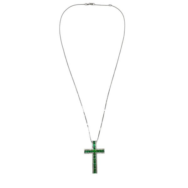 Pendente croce oro bianco 750% BELLE EPOQUE diamanti 0,18 ct colore F/vs1 smeraldi 0,51ct CIPOLLA DAL 1950 GIOIELLI ART. GR279