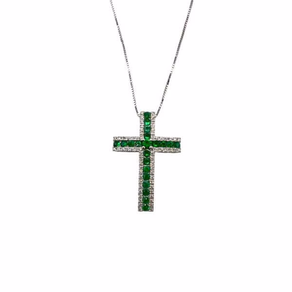 Il pendente è impreziosito da diamanti dal taglio brillante (0,13 ct, colore F, purezza VS1) e da smeraldi naturali (0,20 ct), incastonati con grande maestria per far risplendere ogni dettaglio. I smeraldi, con il loro verde intenso e luminoso, si abbinano perfettamente alla brillantezza dei diamanti, creando un contrasto affascinante e armonioso. La bellezza di questo gioiello è ulteriormente valorizzata dall’accurata lavorazione dei materiali, che riflette l’attenzione al dettaglio e l’esperienza secolare della gioielleria Cipolla.