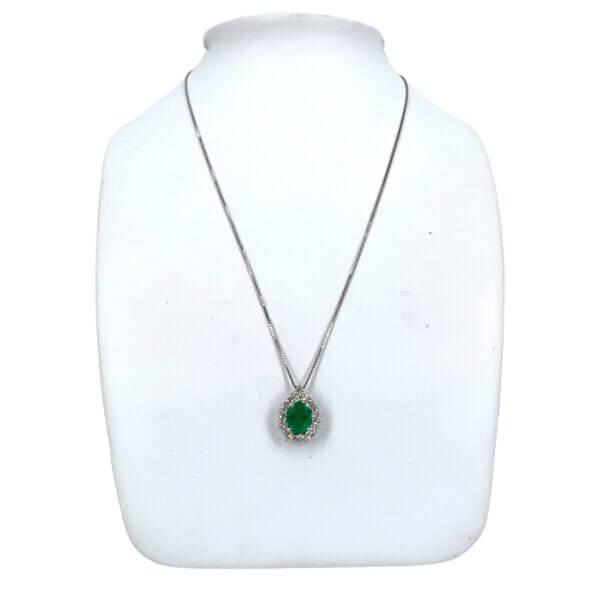 Girocollo diamanti e smeraldo Cipolla dal 1950 Gioiellieri COLLEZIONE BON TON, lavorazione artigianale; Montatura in Oro bianco 18 KT, 750%, Diamanti 0,50 ct colore F purezza VS1 taglio brillante,Smeraldo provenienza Colombia taglio ovale peso 1,17 ct.