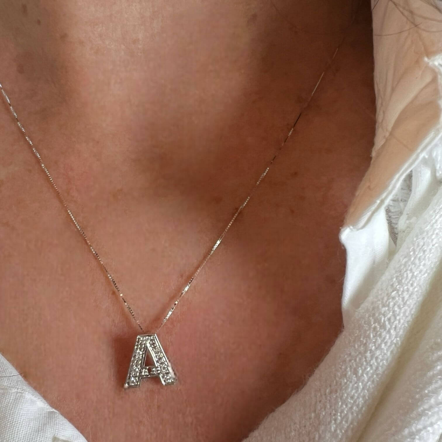 La lettera A, incastonata con cura e attenzione al dettaglio, cattura lo sguardo con la sua luminosità, grazie ai diamanti di alta qualità che la adornano. Con una caratura totale di 0,08 carati, una purezza VS2 e un colore F, i diamanti aggiungono uno splendore radioso al pendente, creando un effetto di luce incantevole.