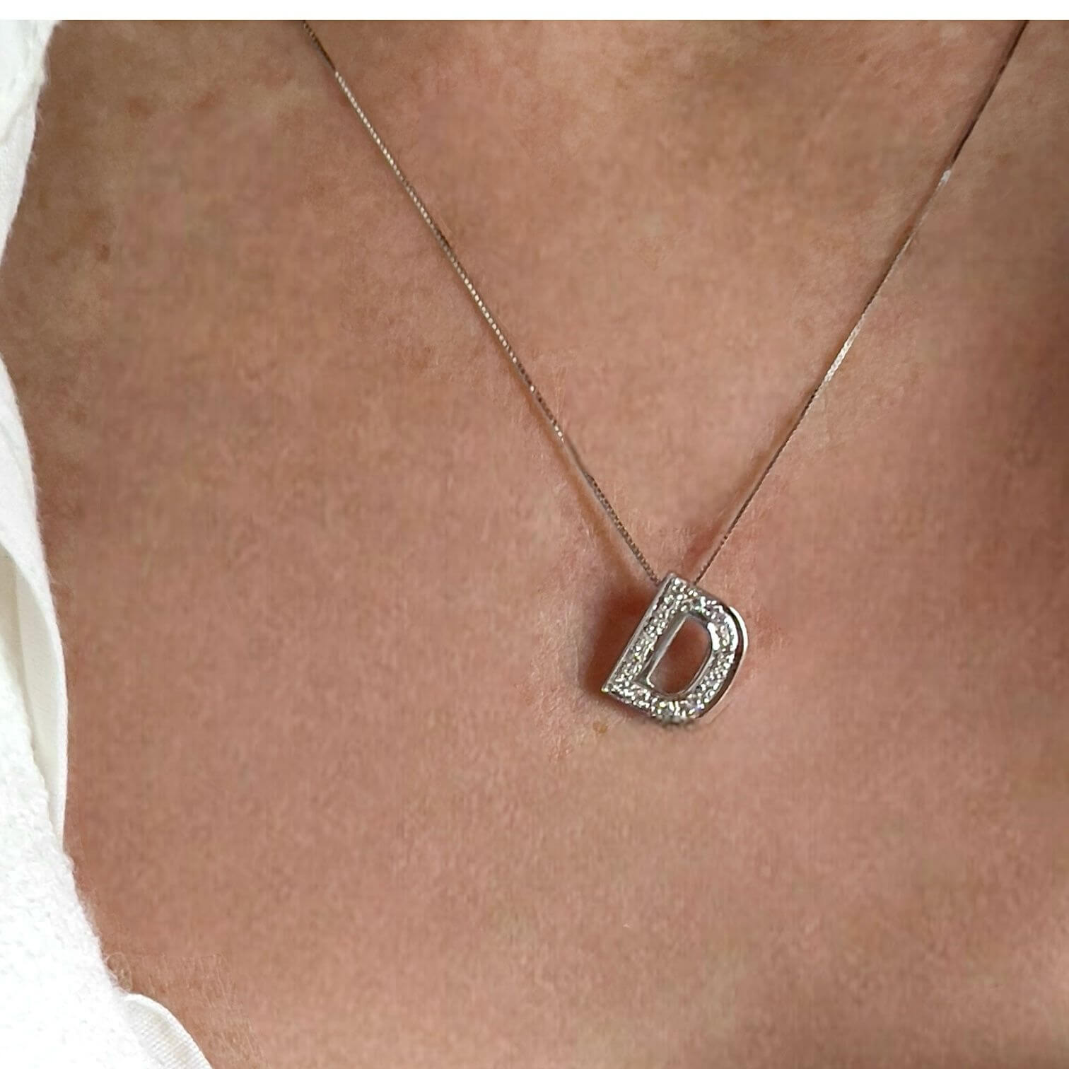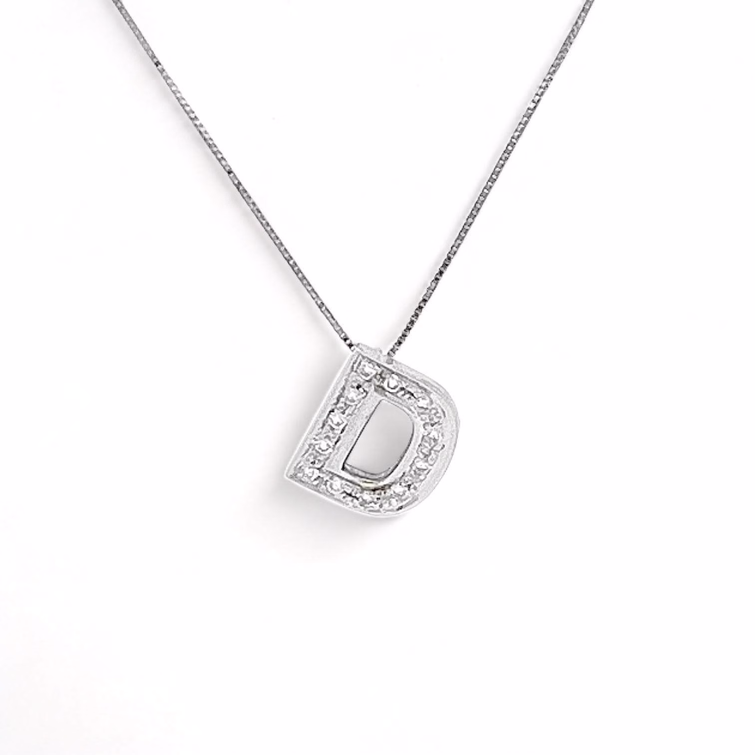 La lettera D, incastonata con maestria, diventa un simbolo di significato personale e di fascino intramontabile. Impeccabilmente dettagliata e rifinita, questa lettera scintilla con luce propria grazie ai diamanti di alta qualità incastonati con precisione chirurgica. Con una caratura totale di 0,08 carati, una purezza VS2 e un colore F, i diamanti aggiungono un tocco di lusso discreto ma irresistibile al pendente.