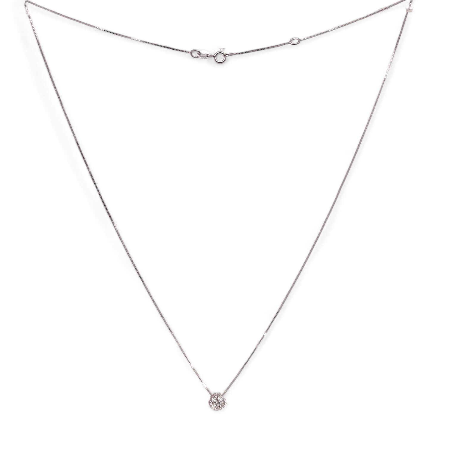 La catenina maglia veneziana in oro bianco 750‰, con doppio anellino per regolare la misura, offre versatilità e comfort, permettendo di adattare il gioiello alla lunghezza desiderata. Il design raffinato e minimalista del pendente punto luce ne fa un gioiello che può essere indossato sia quotidianamente sia per eventi speciali, aggiungendo sempre un tocco di classe e brillantezza.