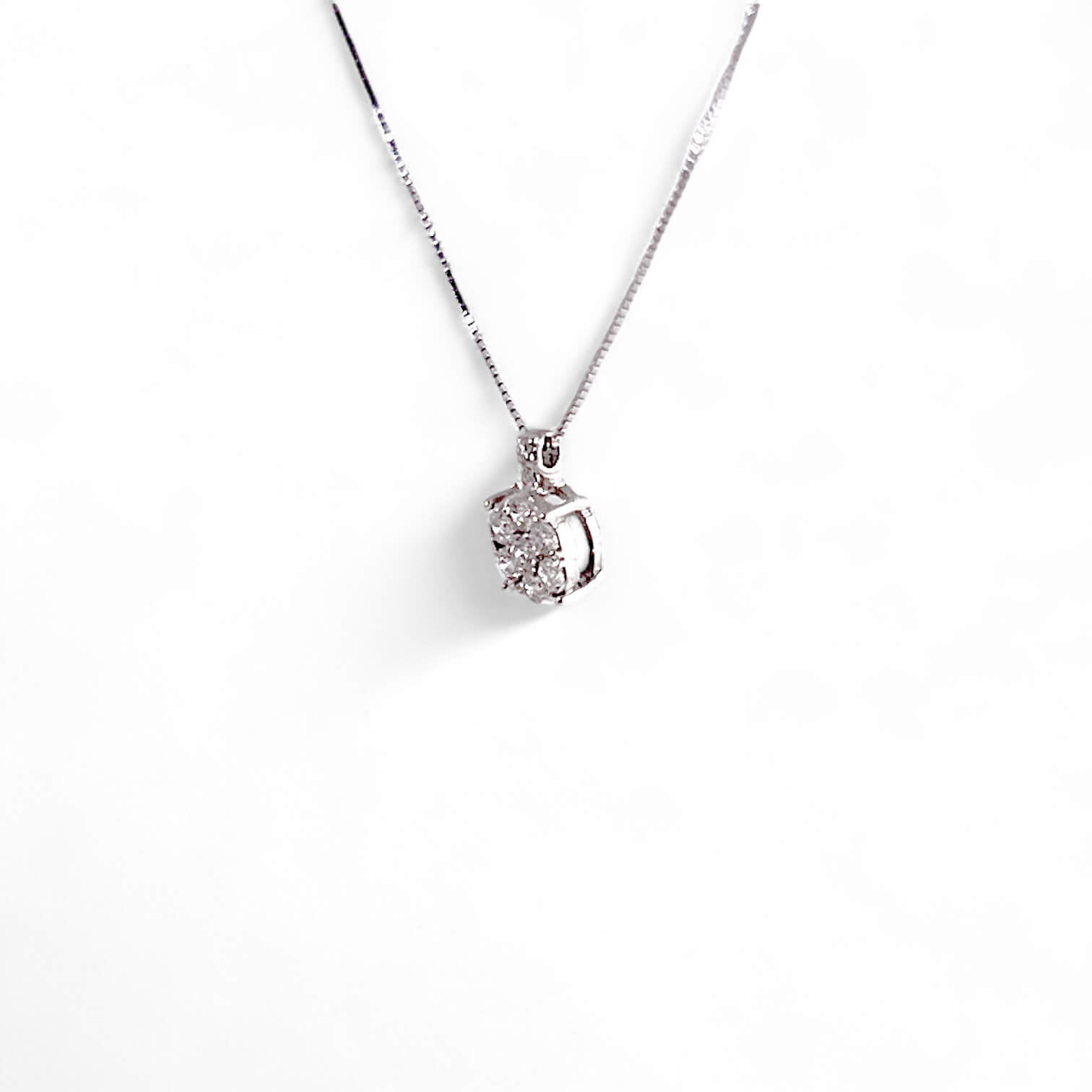 La catenina maglia veneziana in oro bianco 750‰, con doppio anellino per regolare la misura, offre versatilità e comfort, permettendo di adattare il gioiello alla lunghezza desiderata. Il design raffinato e minimalista del pendente punto luce ne fa un gioiello che può essere indossato sia quotidianamente sia per eventi speciali, aggiungendo sempre un tocco di classe e brillantezza.